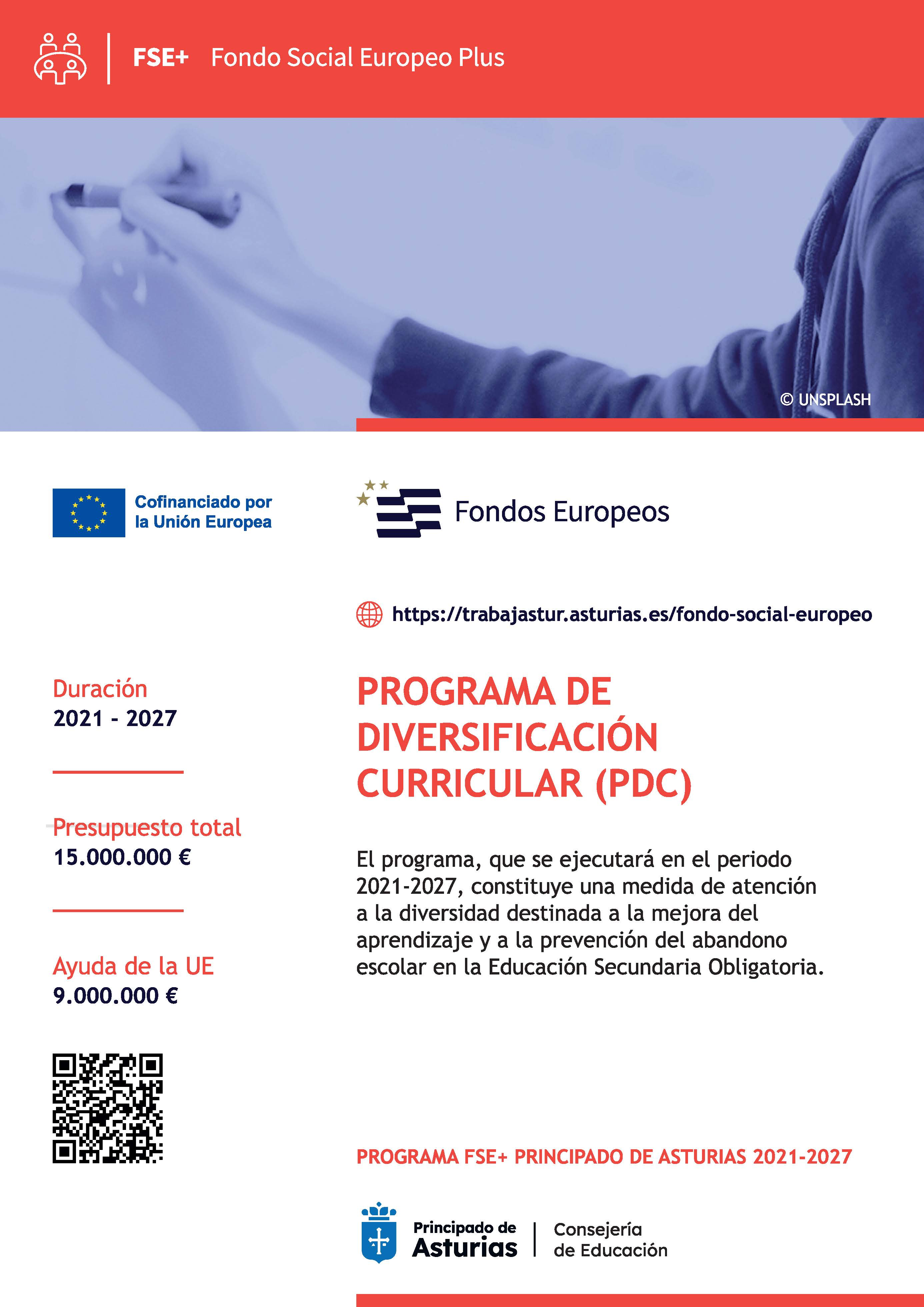 El Programa de Diversificación Curricular está cofinanciado por el Fondo Social Europeo en un 60% en el marco del Programa FSE+ Principado de Asturias 2021-2027