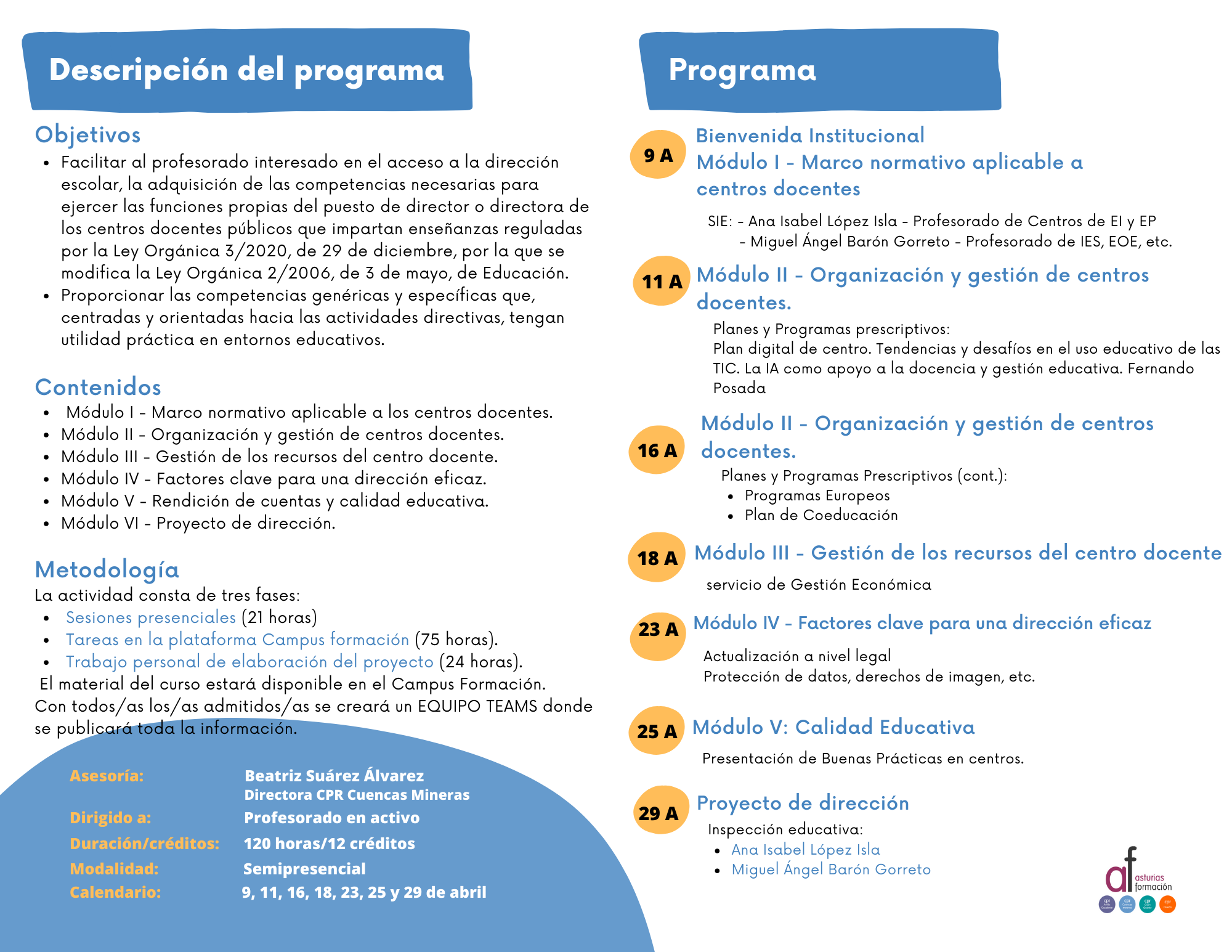 CURSO SEMIPRESENCIAL "DESARROLLO DE LA FUNCIÓN DIRECTIVA"