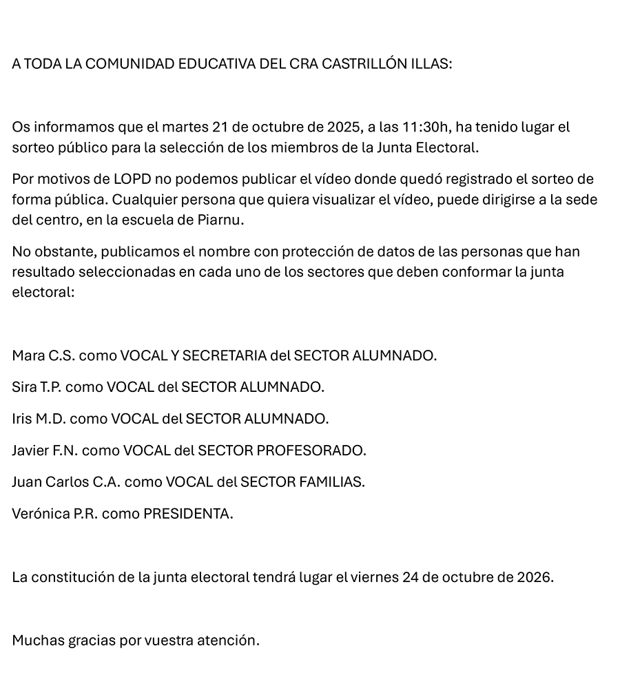 Sorteo Junta Electoral 25-26
