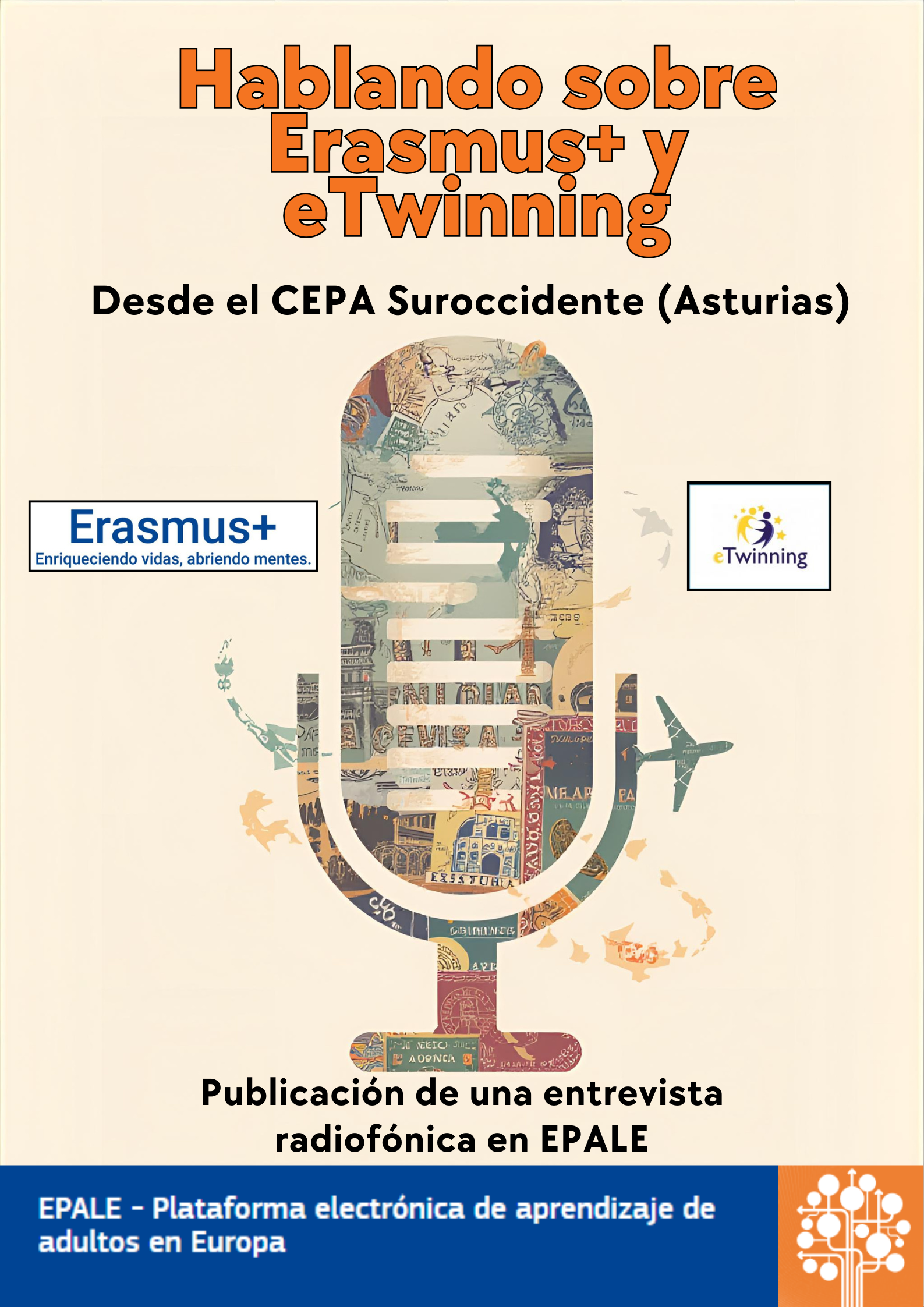 El 19 de febrero la Coordinadora Erasmus del CEPA Suroccidente realiza una pequeña entrevista en la Radio del Principado de Asturias RPA en el programa "La Radio es Mía" para poder dar difusión de los proyectos europeos que se están llevando a cabo en el centro: 2 proyectos eTwinning y un proyecto ERASMUS. Semanas después, el 3 de marzo, también se publica esta noticia en EPALE, la Plataforma Electrónica para el Aprendizaje de Adultos en Europa, bajo el título "Hablando sobre Erasmus+ y eTwinning".