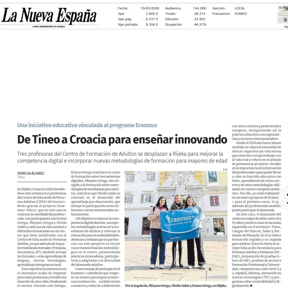 La noticia de las tres docentes que participan en Erasmus+ en la ciudad de Rijeka durante el mes de marzo se puede encontrar en el siguiente enlace: