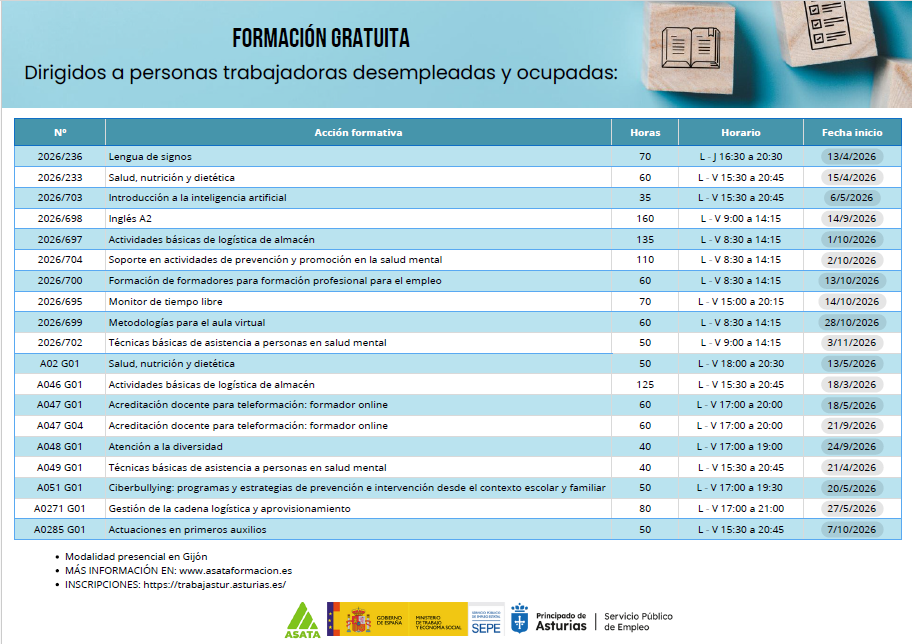 Se publican los siguientes cursos de certificados de profesionalidad.