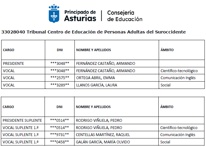 Se publica a continuación el tribunal de dicha prueba y el calendario de la misma: