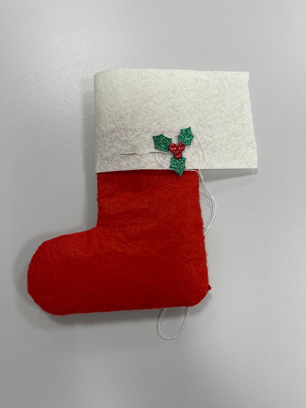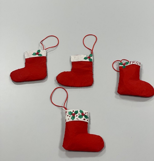 Entre las actividades desarrolladas se incluyen guirnaldas de tela, botas y figura de Papá Noel que han sido utilizadas para adornarel aula y crear un ambiente navideño.