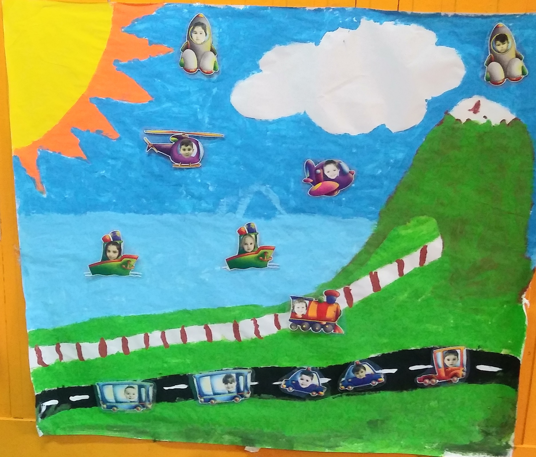 LA CLASE DE 3 Y 4 AÑOS HA TRABAJADO LOS MEDIOS DE TRANSPORTE Y ENTRE TODOS Y TODAS HAN DECORADO EL PASILLO CON UN GRAN MURAL, DONDE CADA UNO Y CADA UNA SE HA SUBIDO A SU MEDIO DE TRANSPORTE FAVORITO. ¡BUEN VIAJE !