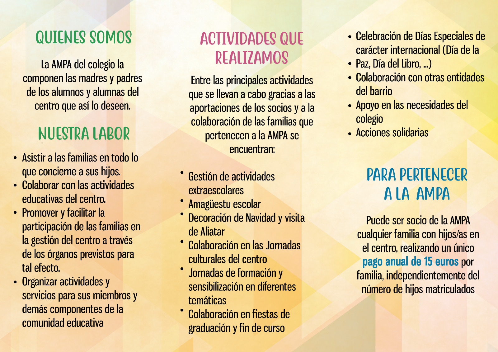 Adjuntamos a continuación los carteles informativos sobre las funciones del AMPA.