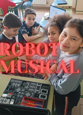 En Tercero y Cuarto de Educación Primaria hicimos un taller de robótica musical muy divertido. Nos dividimos por grupos y fuimos elaborando un robot musical siguiendo los pasos que nos indicaban. El resultado final fue un maravilloso instrumento musical formado de muchas piezas, el cual pudimos tocar y con el que elaboramos celestiales sinfonías.