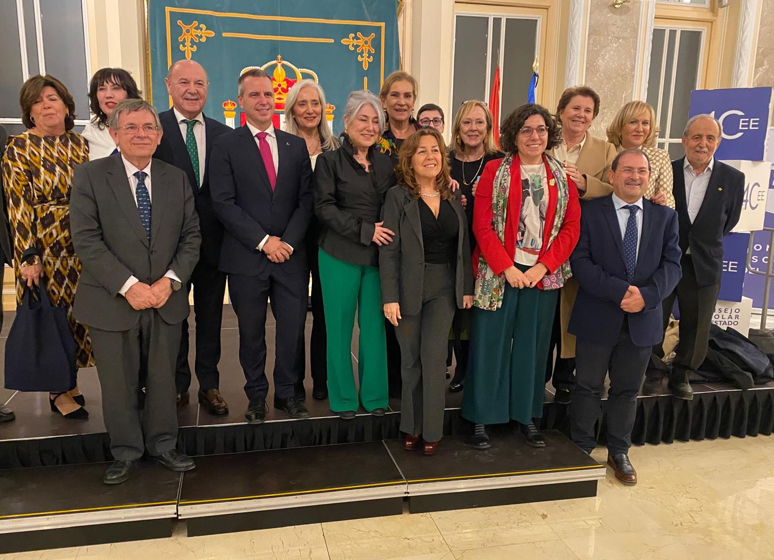 Foto de familia de las personas que ostentan la presidencia en los Consejos Escolares de las distintas Comunidades Autónomas, junto con la presidenta del Consejo Escolar del Estado y representantes de la Xunta de Galicia.