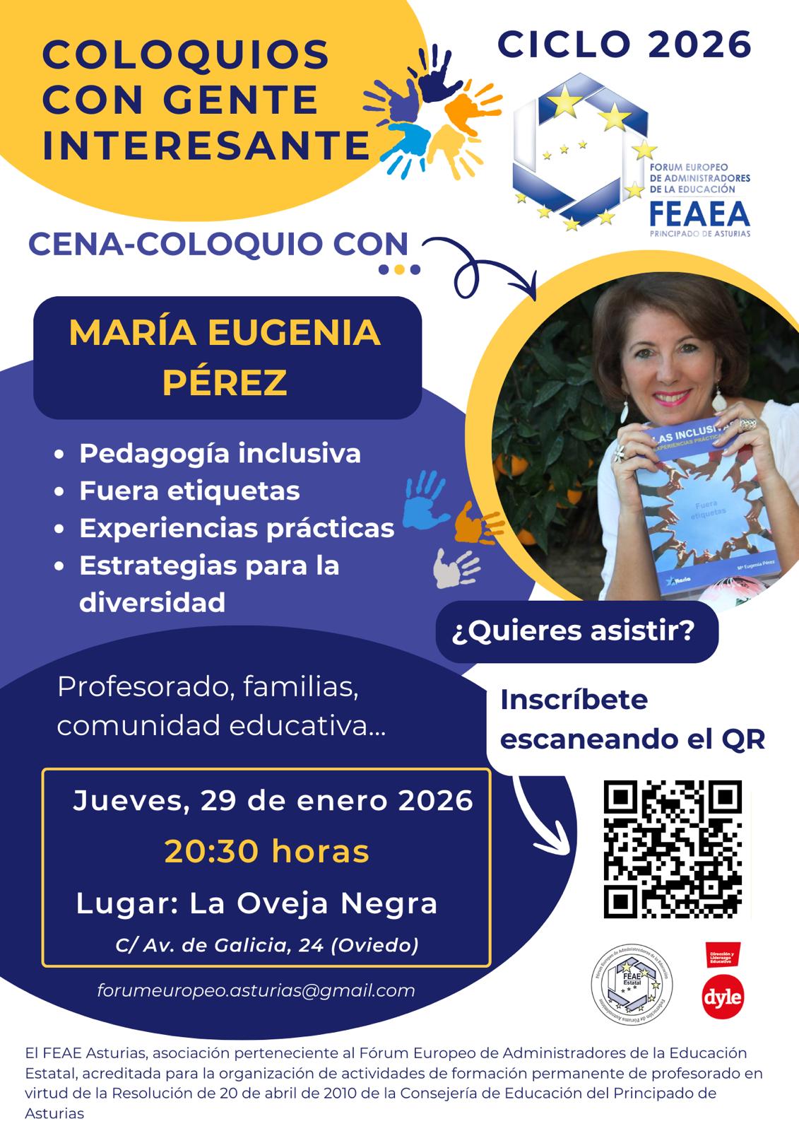 La presidenta del Consejo Escolar ha asistido por la mañana a una sesión de concienciación sobre la Inteligencia Artificial, donde se han tratado aspectos como el origen de la inteligencia artificial, cómo funciona, cuál es su impacto y, sobre todo, qué riesgos puede generar cuando se usa de forma irresponsable.Por la tarde ha participado en la cena-coloquio con María Eugenia Pérez, organizada por el Forum Europeo de Administradores de la Educación (FEAE) en la Oveja Negra de Oviedo.