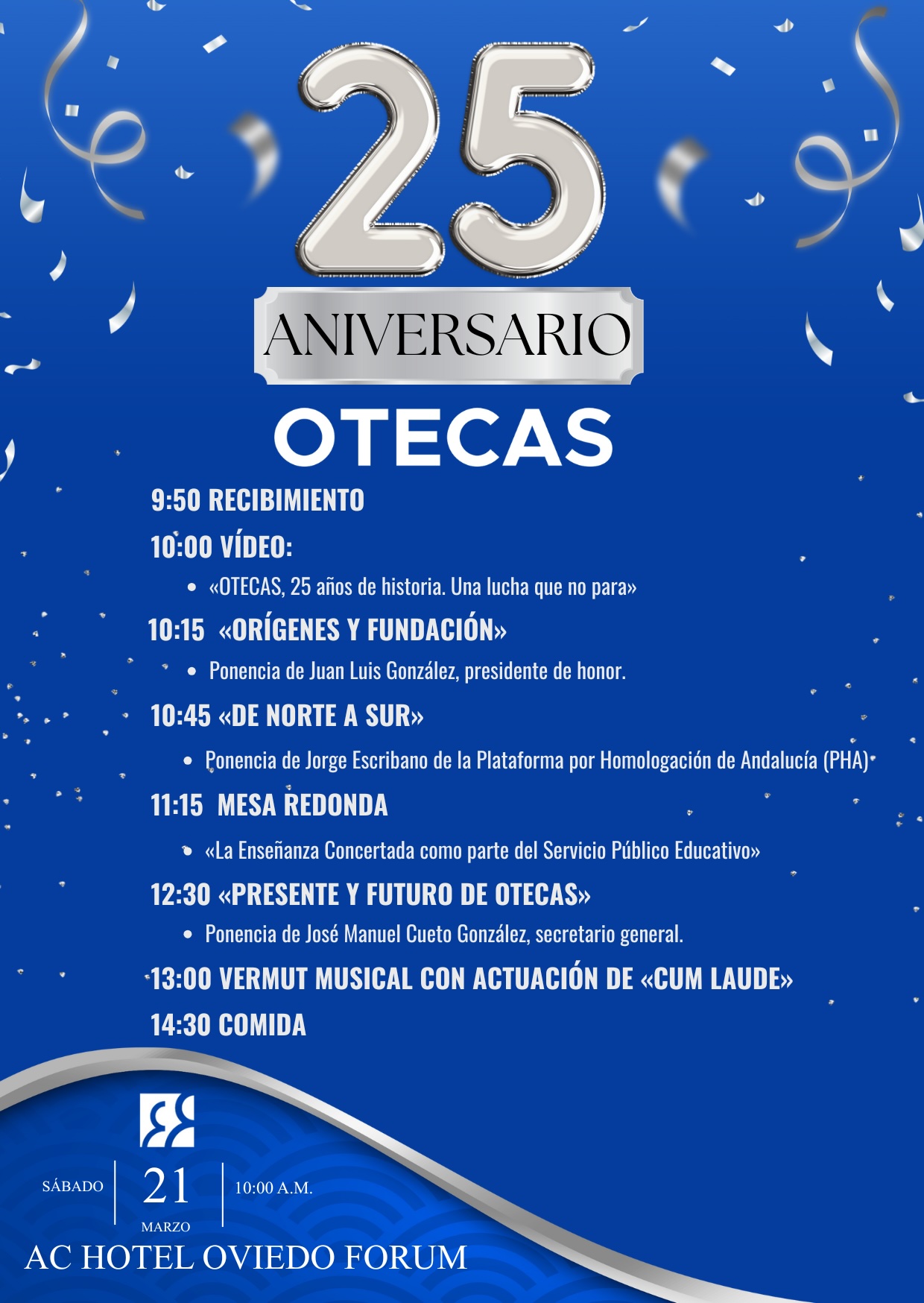 La presidenta, María Luz Pontón, asiste al acto de celebración del 25º Aniversario de la Organización de Trabajadores de Enseñanza Concertada de Asturias (OTECAS) en el Hotel AC Fórum en Oviedo.