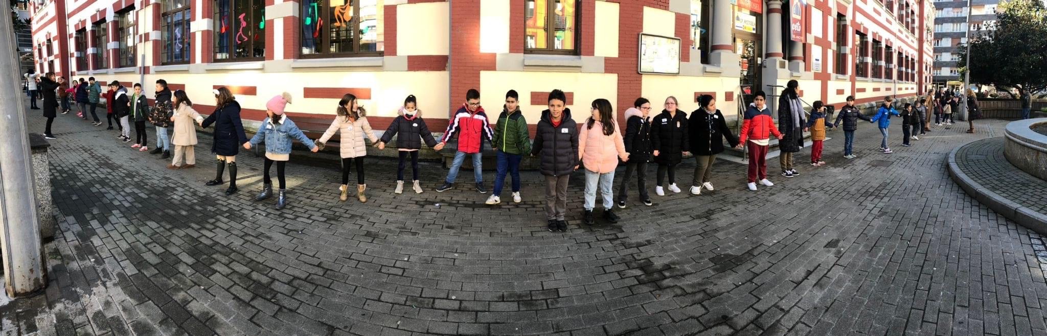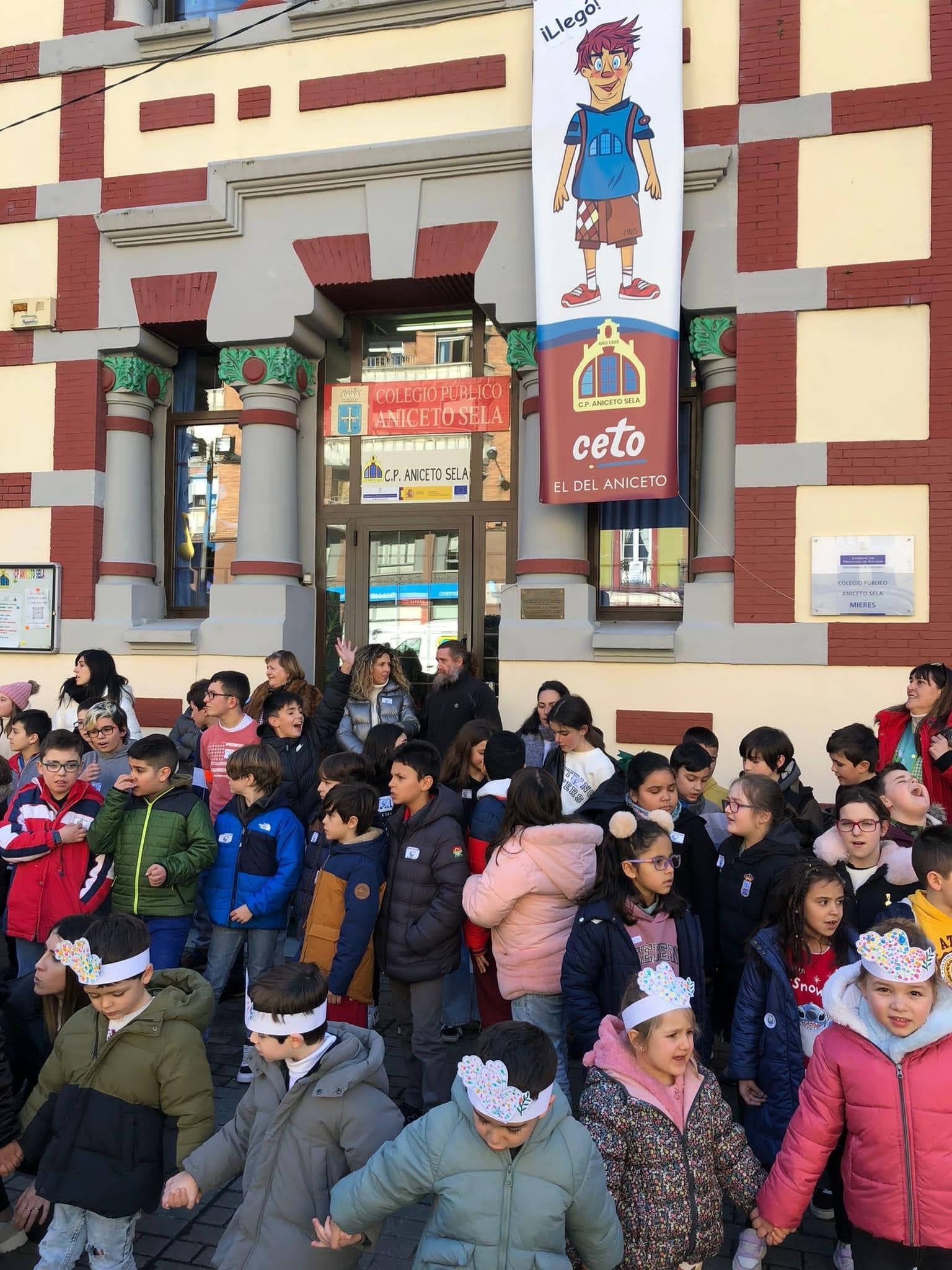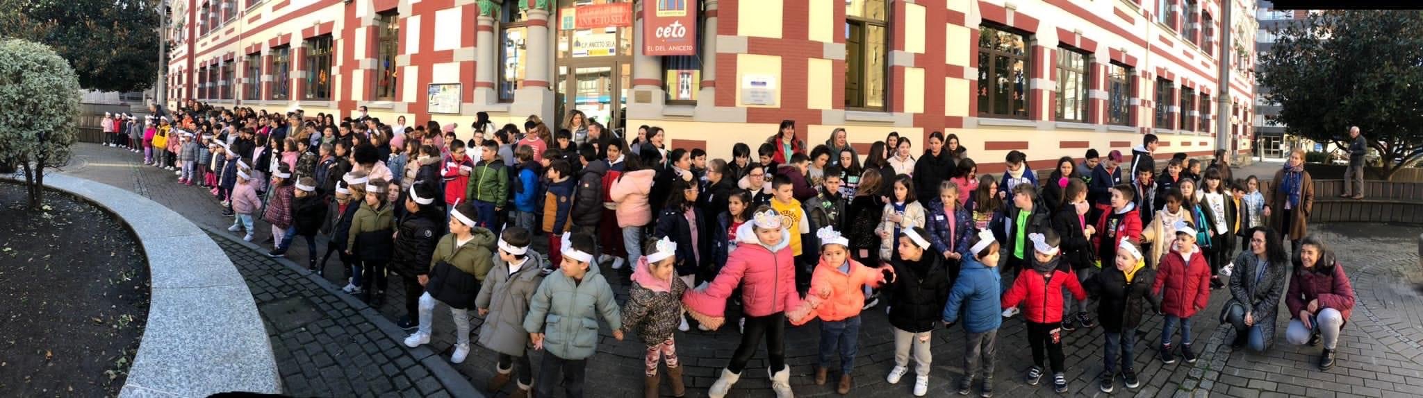 El pasado lunes día 30, como cada año, celebramos en nuestro cole el Día de la Paz y la no Violencia. En esta ocasión fue una celebración muy especial. En colaboración con las escuelas RETO, elaboramos un mural precioso con el lema "Elige la alegría, elige creer en los demás: ELIGE LA PAZ! Para ello salimos a la plaza delantera de nuestro centro a dar la nota por la Paz. En el acto hubo muchas partes: nuestra directora Maite dijo unas palabras haciendo referencia al proyecto Reto en el que estamos inmersos, hicimos una cadena humana alrededor del centro dándonos las manos y repartimos pegatinas de la Paz a los habitantes de Mieres que pasaban por allí. Por supuesto cantamos nuestra canción de la PAZ todos juntos y recordmos la importancia de ponernos en el lugar del compañero y ayudar a los demás. Haz clic en la imagen para poder ver las fotos y vídeos de la conmemoración.