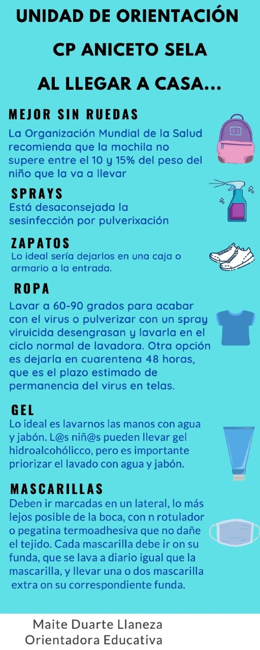 Nuesta Unidad de Orientación ha preparado la siguiente infografía con consejos útiles para cuando volvamos a casa desde el cole..