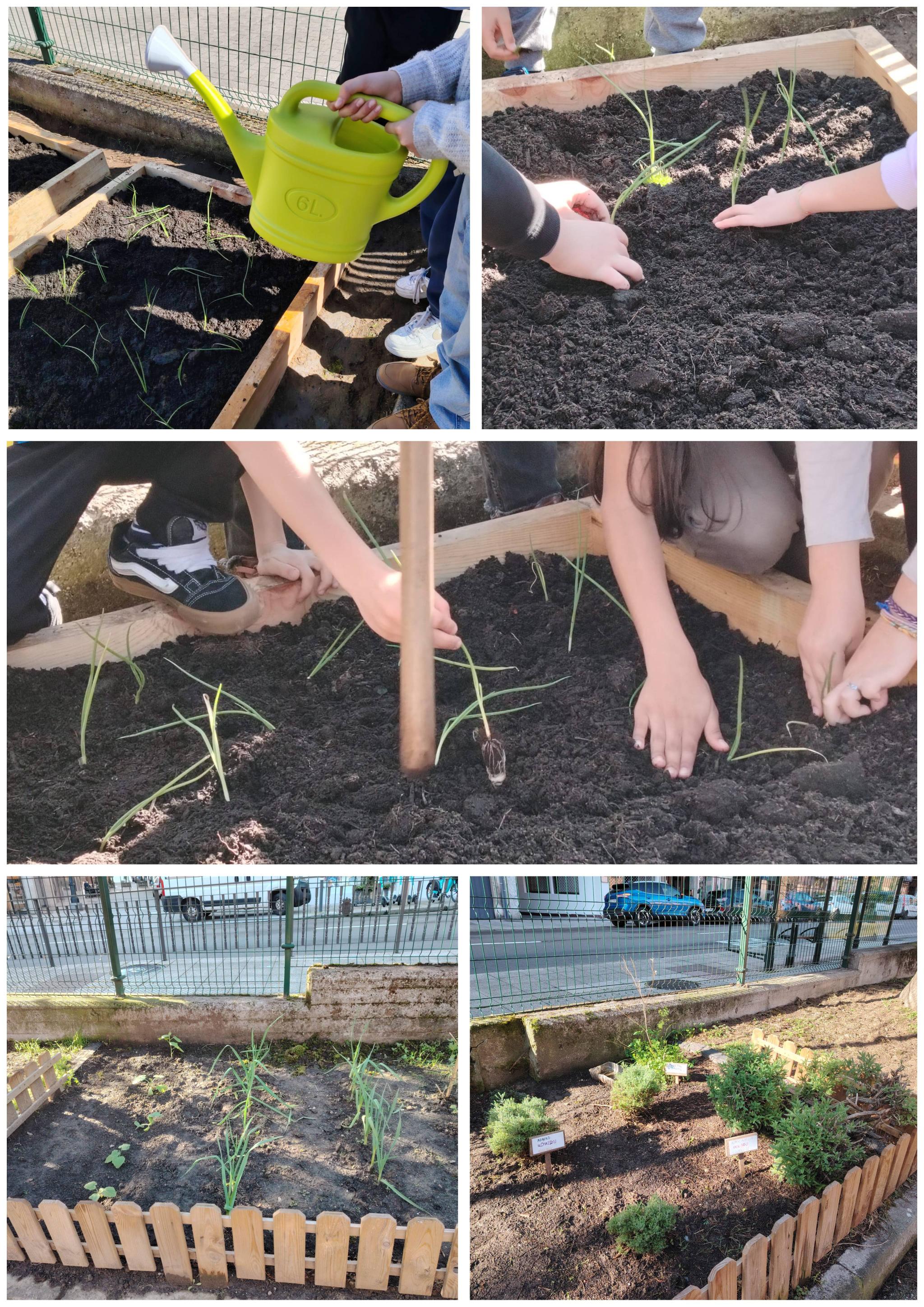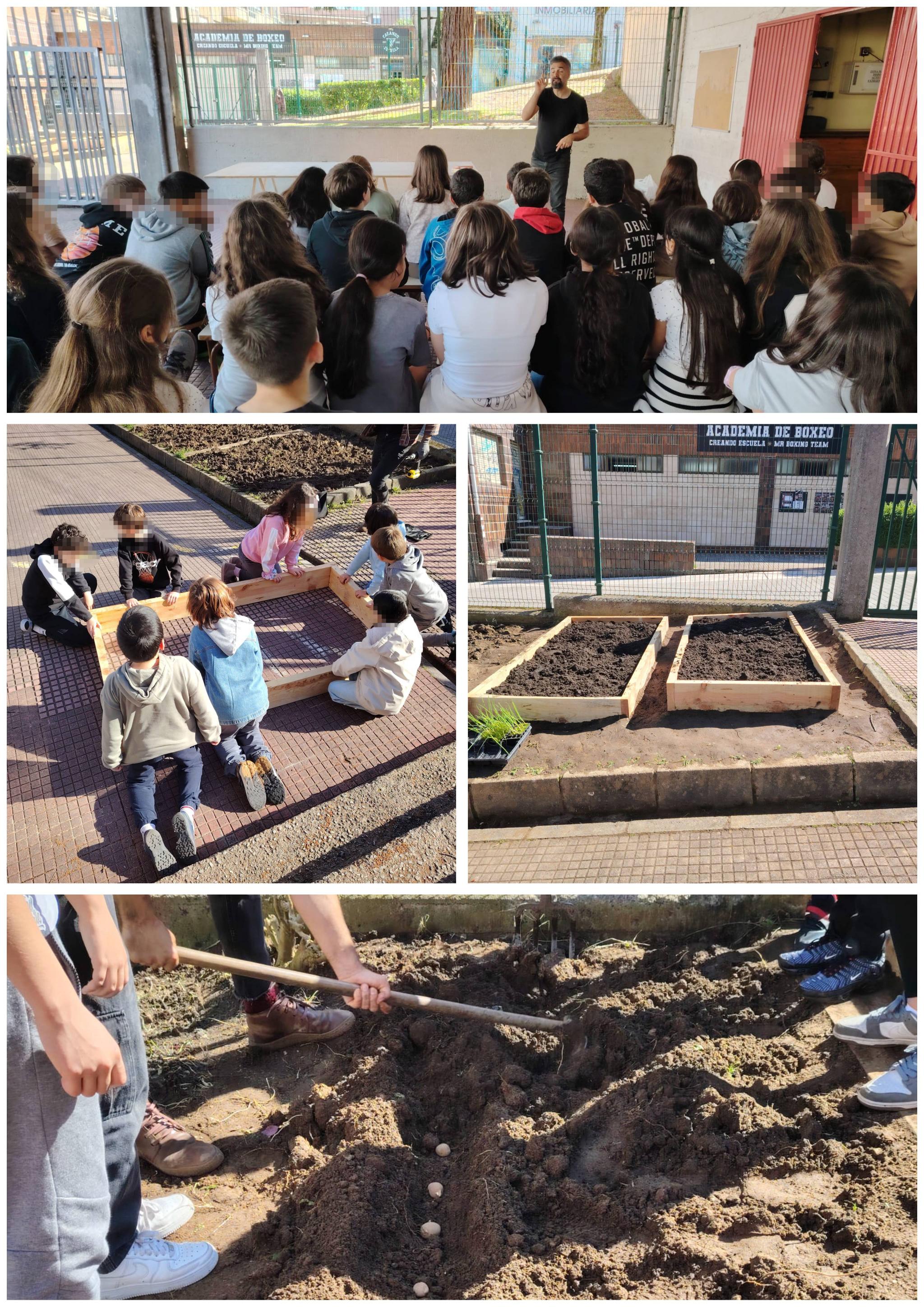 El alumnado de 4º, 5º y 6º de Educación Primaria ha participado hoy en el acondicionamiento del Huerto de Primaria, preparando los bancales y la tierra para la siembra de patatas y cebollas.