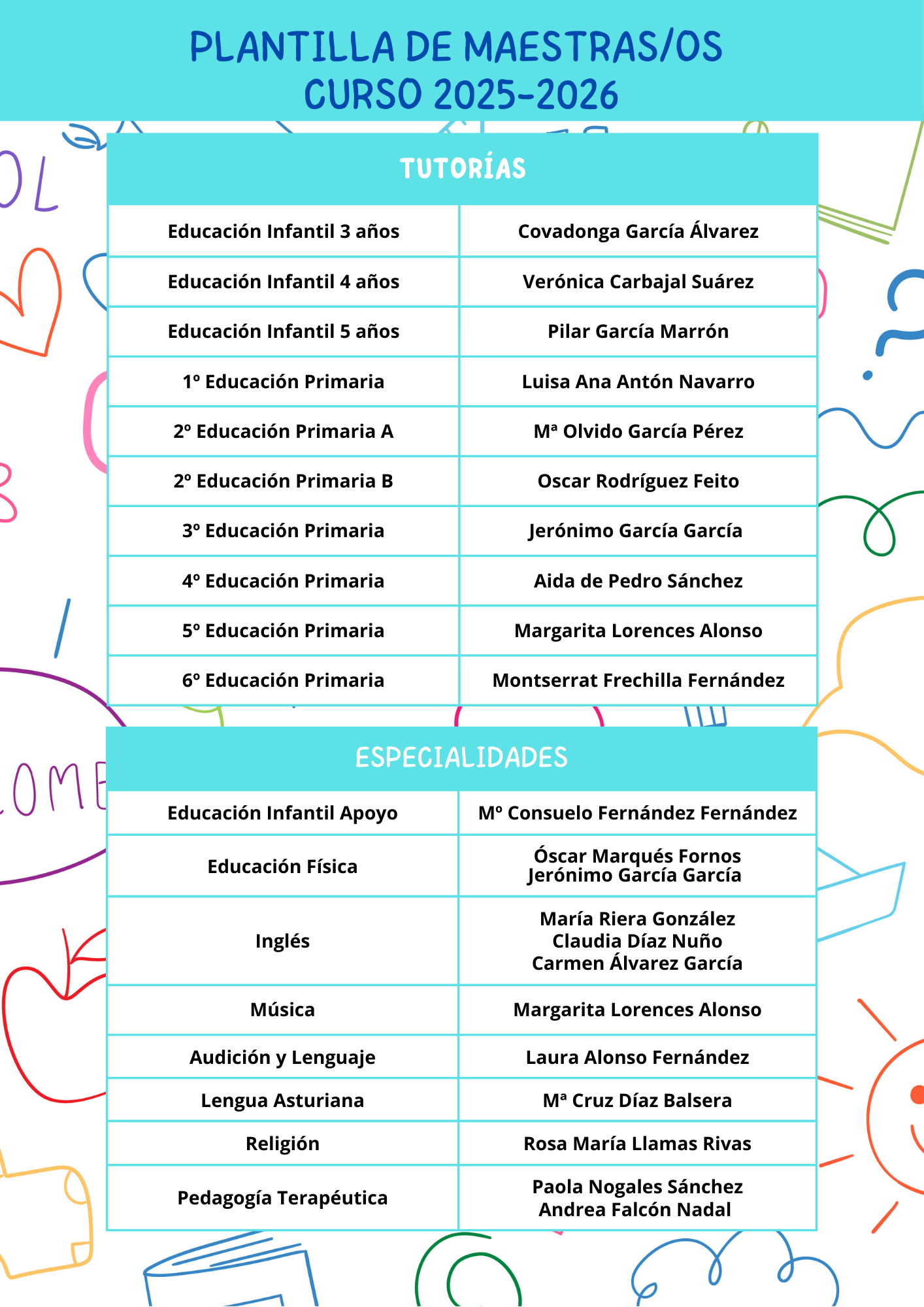 Así mismo en el menú de navegación de la derecha se incluyen enlaces a otras informaciones generales, que pueden estar en otros lugares de esta página Web y que también pueden interesar, como son los menús de comedor, la asignación de profesores tutores y especialistas, los horarios de atención a las familias por parte del profesorado (tutorías), etc...