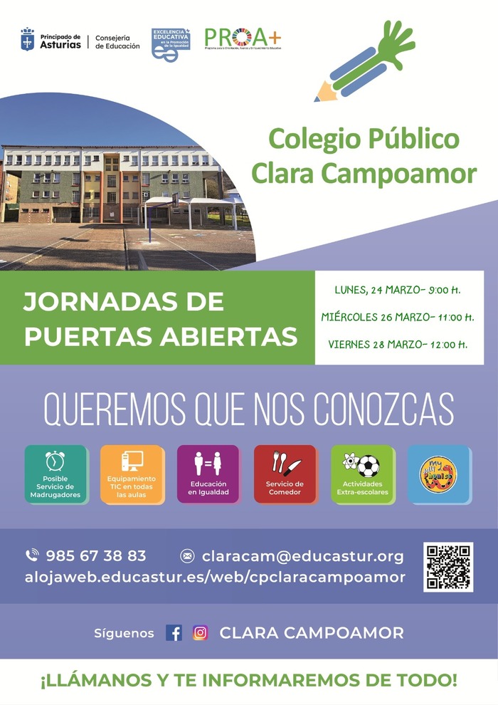 Nos complace informaros que nuestro colegio organizará unas jornadas de puertas abiertas los días 24, 26 y 28 de marzo. Estas jornadas son una excelente oportunidad para que podáis conocer de cerca nuestro centro educativo y descubrir todo lo que tenemos que ofrecer.