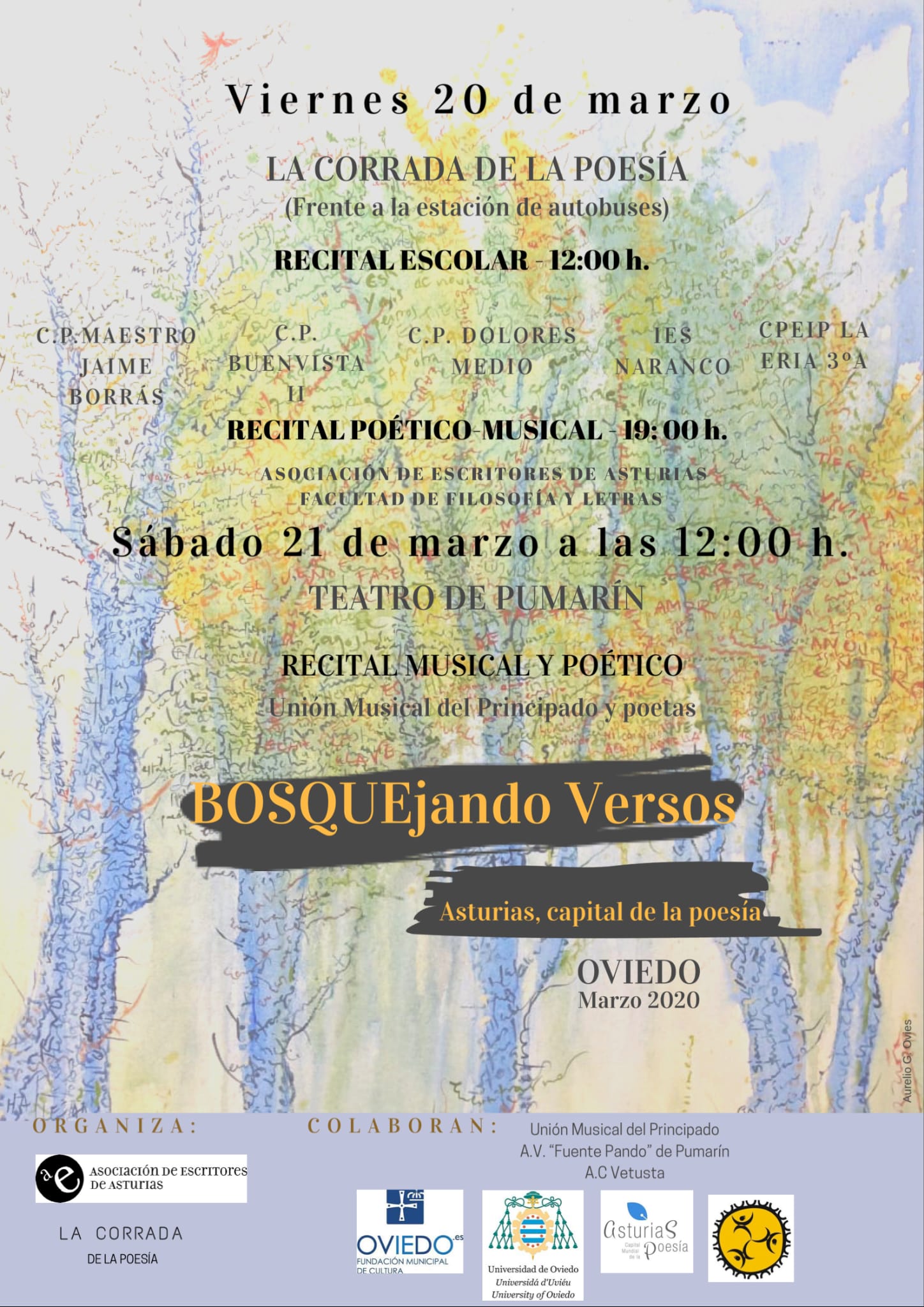 El próximo viernes, 20 de marzo, con motivo de la celebración del Día Mundial de la Poesía, un grupo de alumnos voluntarios de EP5 participarán en el acto que se celebrará en la Corrada de la Poesía, de Oviedo, recitando algunos poemas relacionados con los bosques.