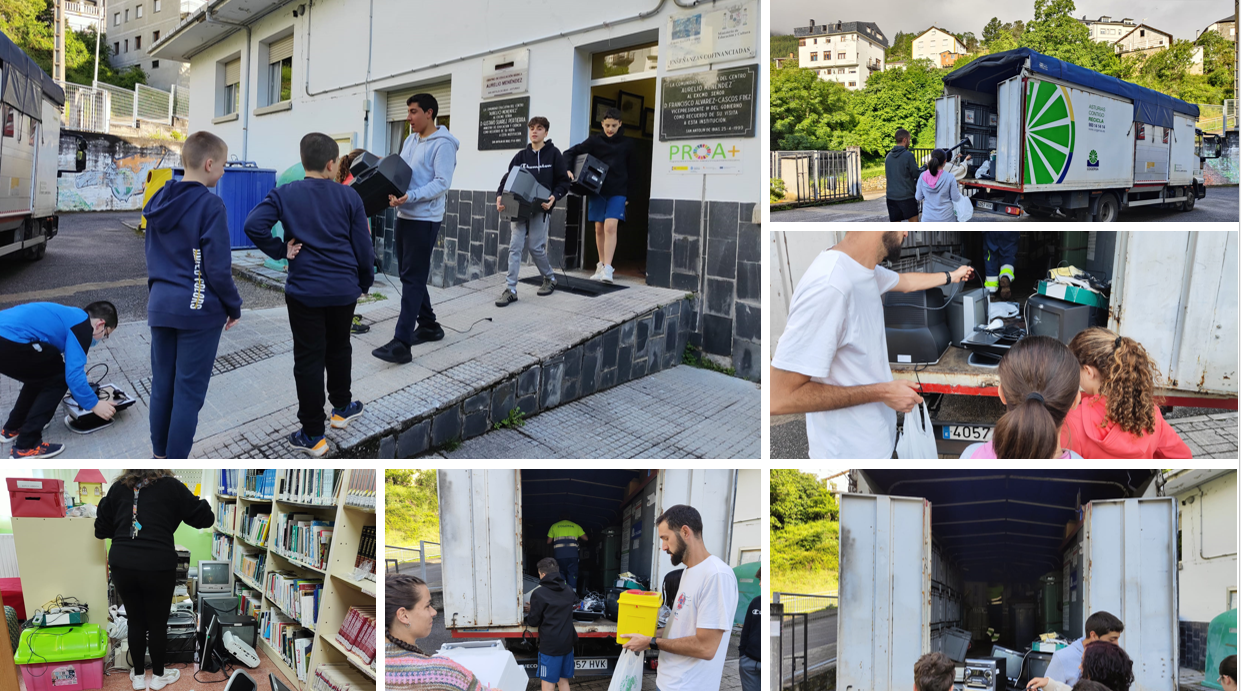 El jueves 23 de mayo vino al colegio el camión del Punto Limpio Móvil de Ibias. Reciclamos residuos electrónicos y de otra naturaleza (ropa usada, bombillas, fluorescentes, electrodomésticos en desuso...). Toda la comunicada educativa colaboró trayendo de sus casas materiales reciclables y el alumnado y profesorado los trasladó al camión.