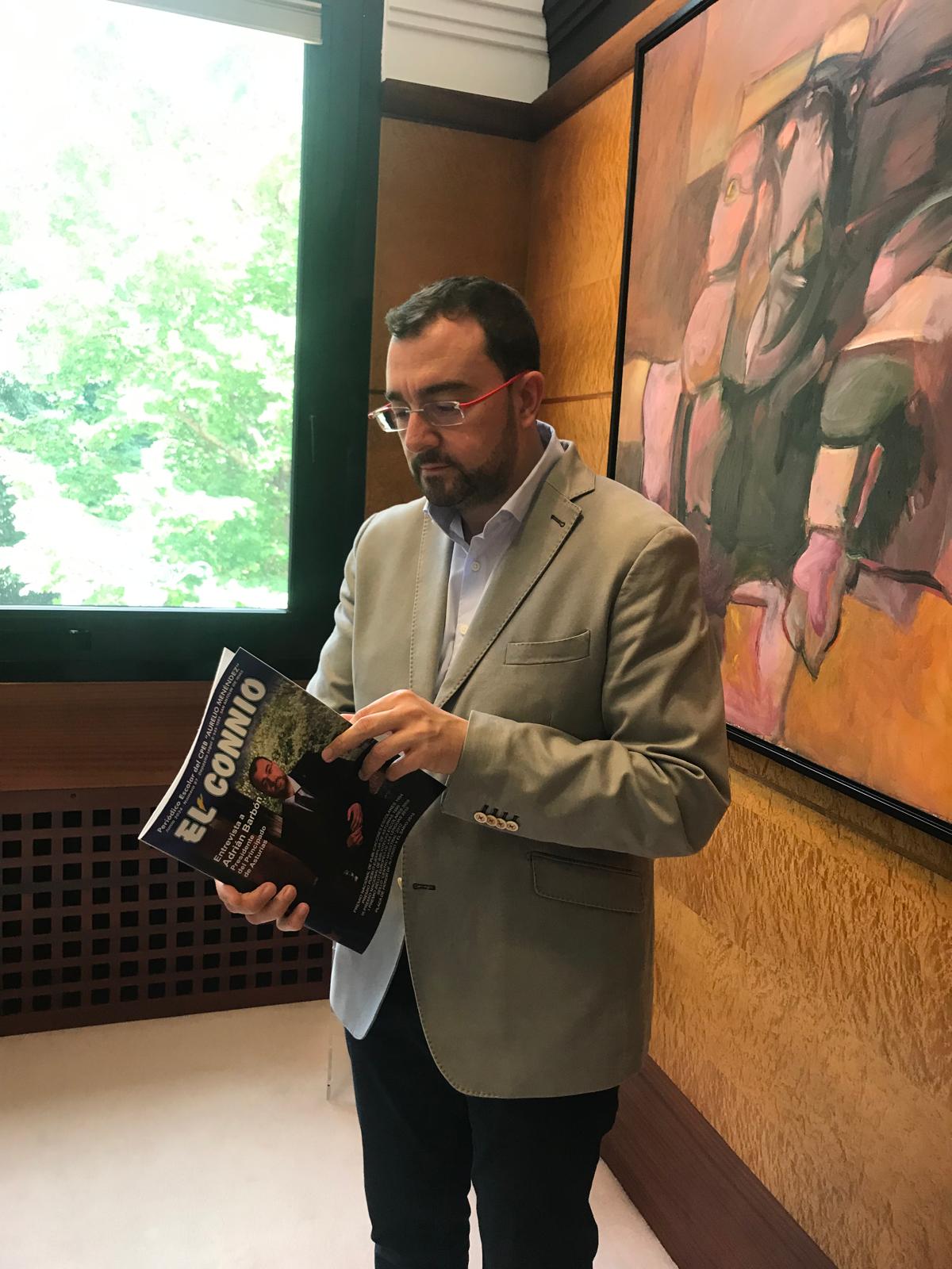 En las fotos podemos ver al Presidente del Principado de Asturias interesado en el periódico escolar El Connio, que contó con su participación.