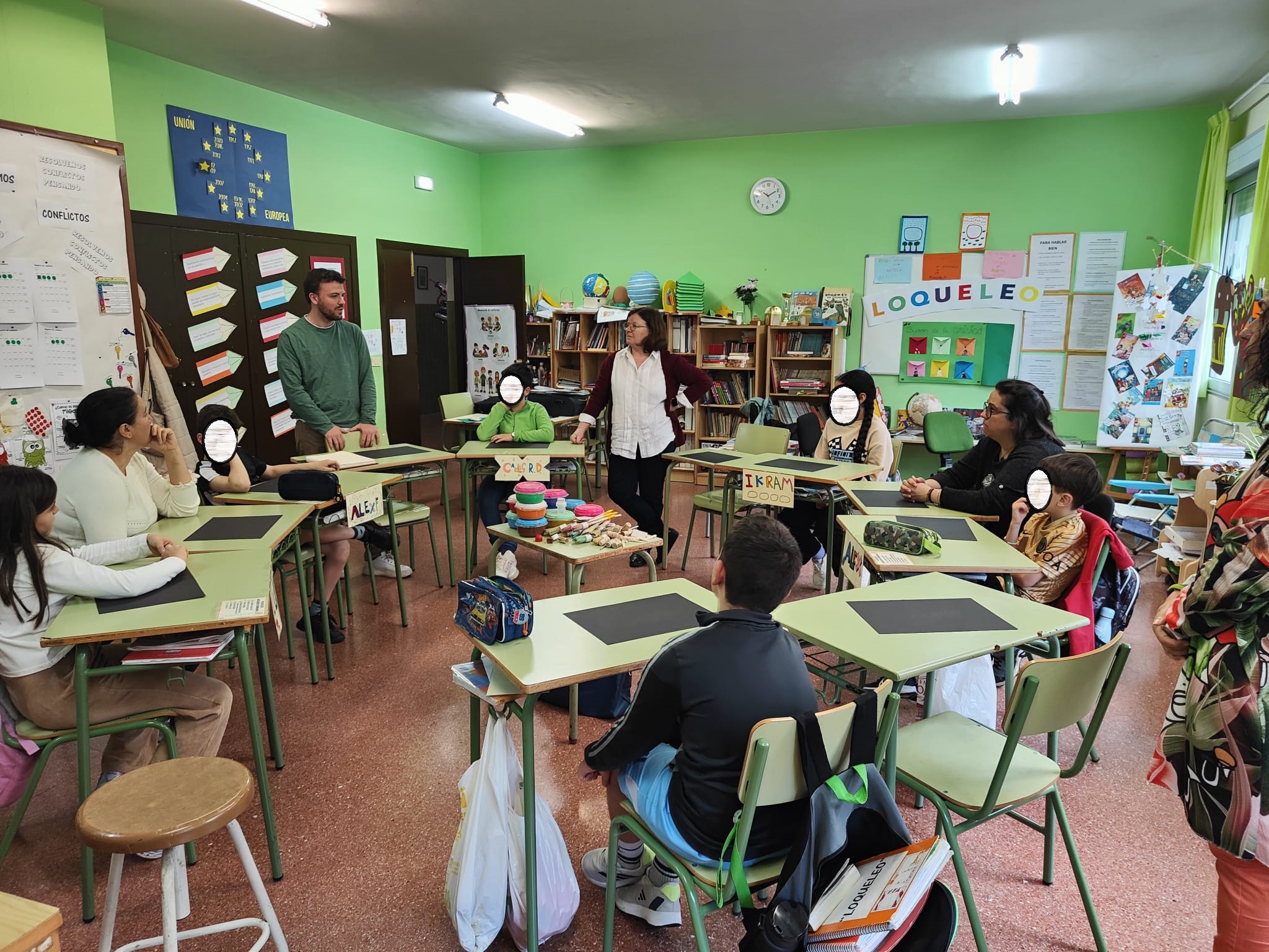 El viernes 4 de abril algunas familias participaron en un taller de encuadernación enmarcado en el proyecto Valnalón, una iniciativa que fomenta la cultura emprendedora en Asturias en la que está participando el agrupamiento flexible 2 de Primaria. La artesana Carmen Fernández dirigió el taller de encuadernación, basado en la técnica de papeles al engrudo, utilizada desde el siglo XVI y consistente en añadir pigmentos al engrudo para pegar sus trabajos, creando así efectos visuales únicos. Esta técnica permite obtener una variedad de texturas, lo que la convierte en una opción versátil y creativa.