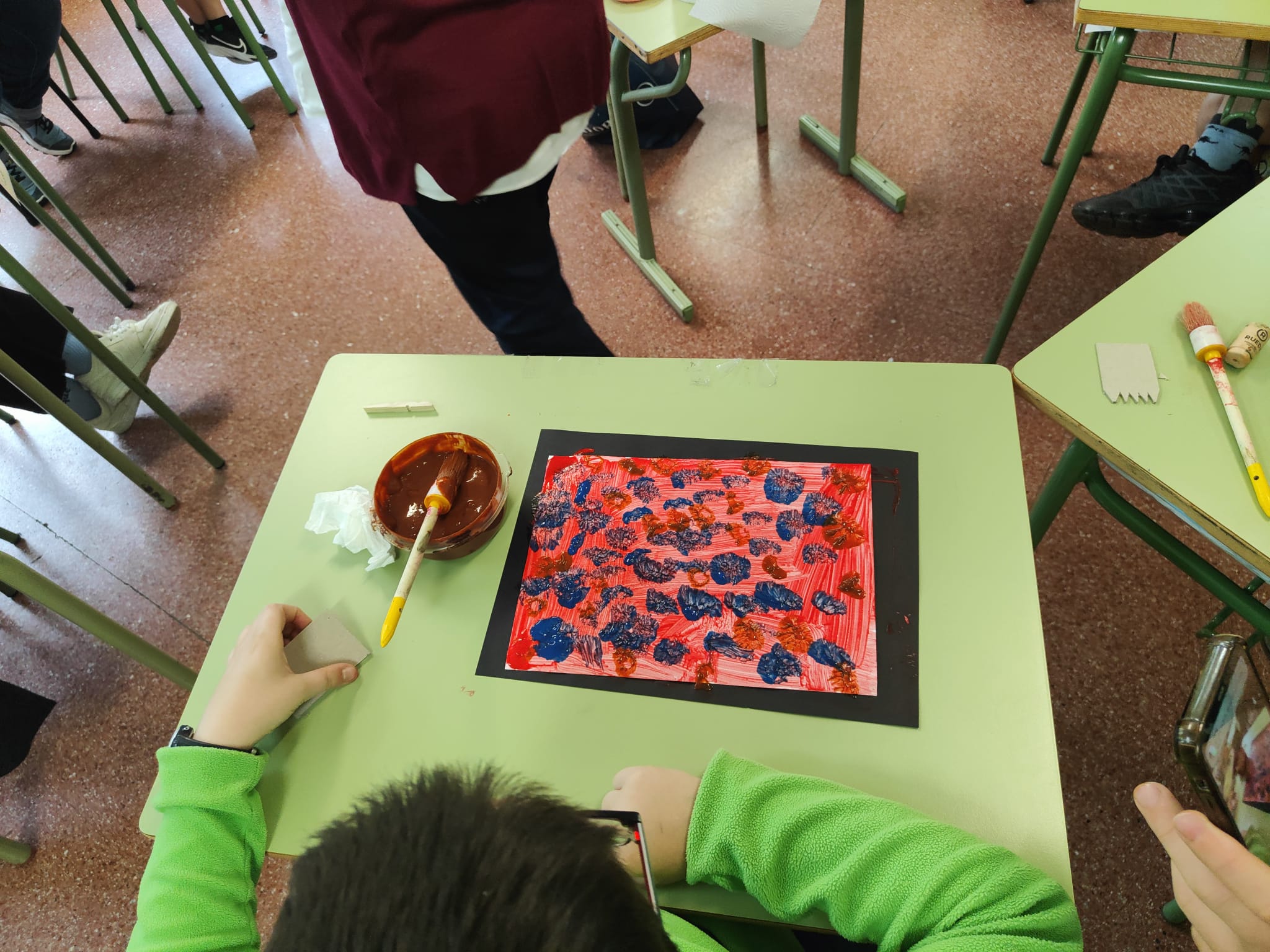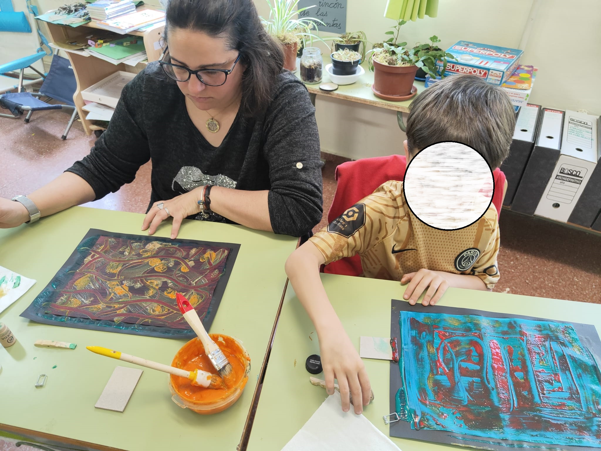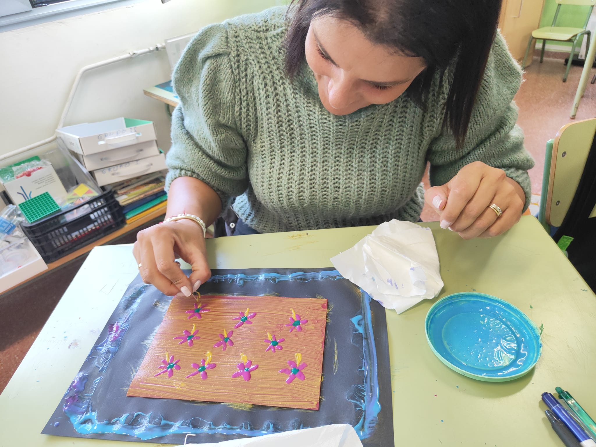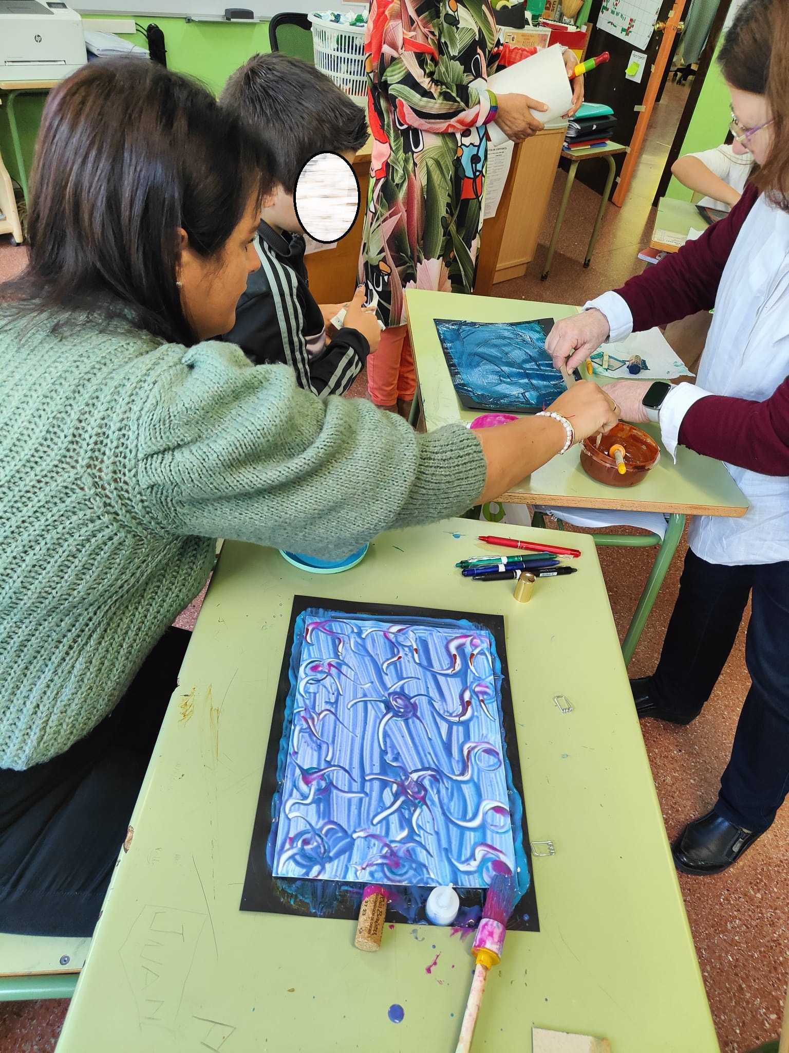 Los utensilios necesarios para lograr estas diferentes texturas son variados y fáciles de conseguir, lo que facilita su aplicación. El resultado siempre sorprende gratamente, convirtiendo cada pieza en una obra de arte única.Fue un taller muy productivo que profesorado, alumnado y familias disfrutaron.