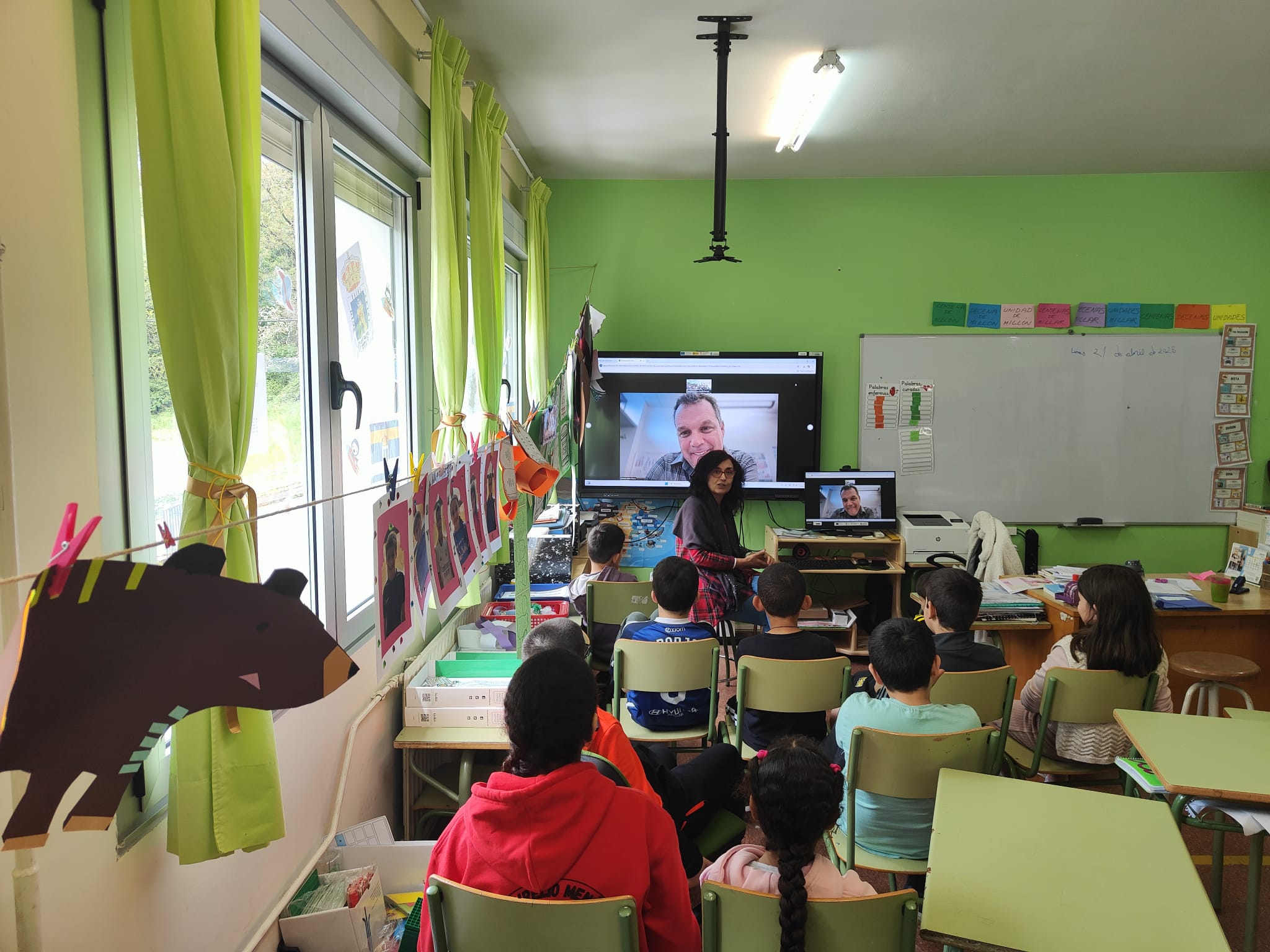 El lunes 21 de abril el alumnado de Primaria realizó una videoconferencia con Rubén, antiguo alumno de este centro educativo. Fue un encuentro muy emotivo y entrañable durante el cual el alumnado se mostró muy participativo, haciéndole múltiples preguntas relacionadas con su infancia en Ibias y su profesión de investigador y profesor.