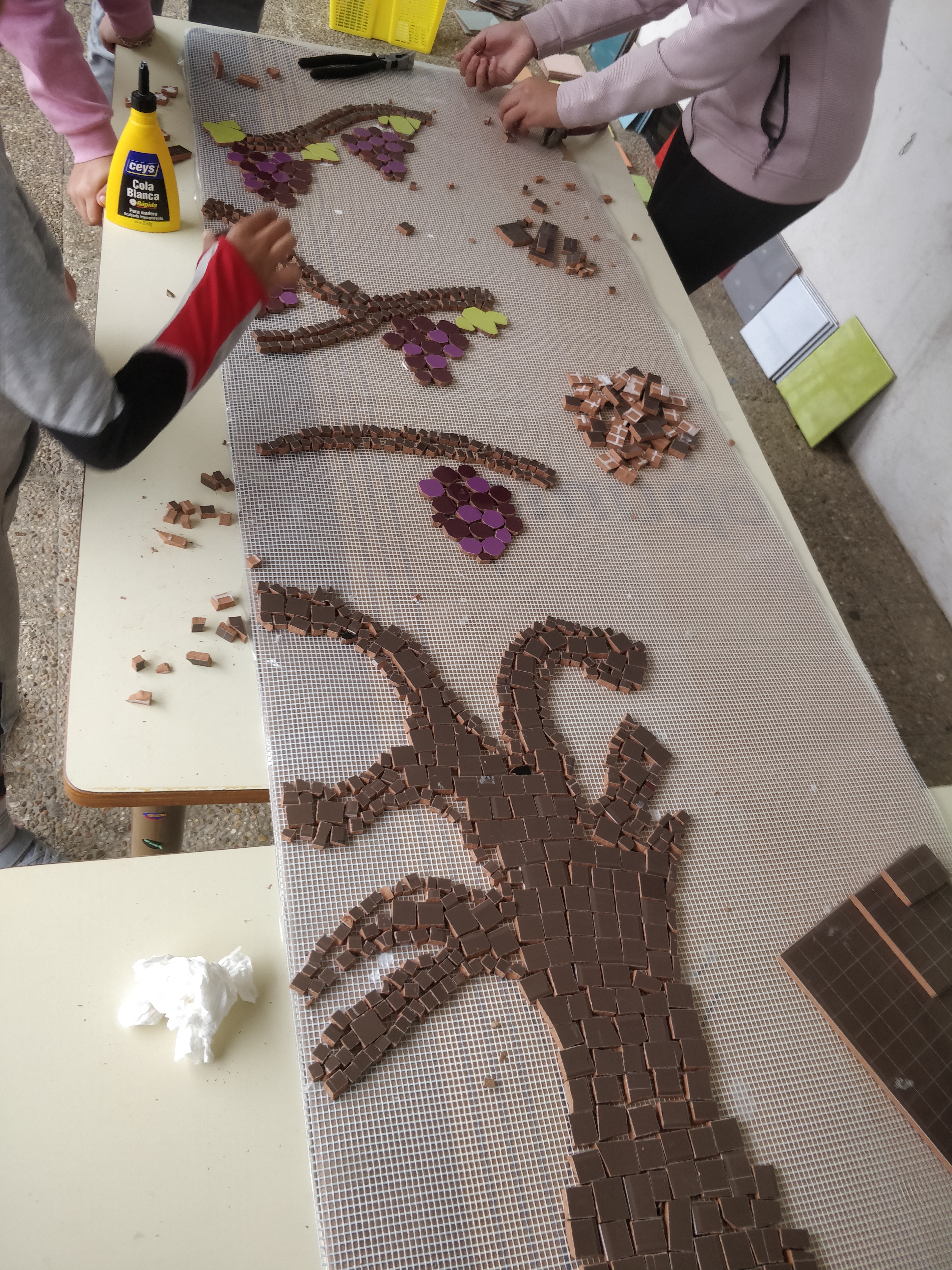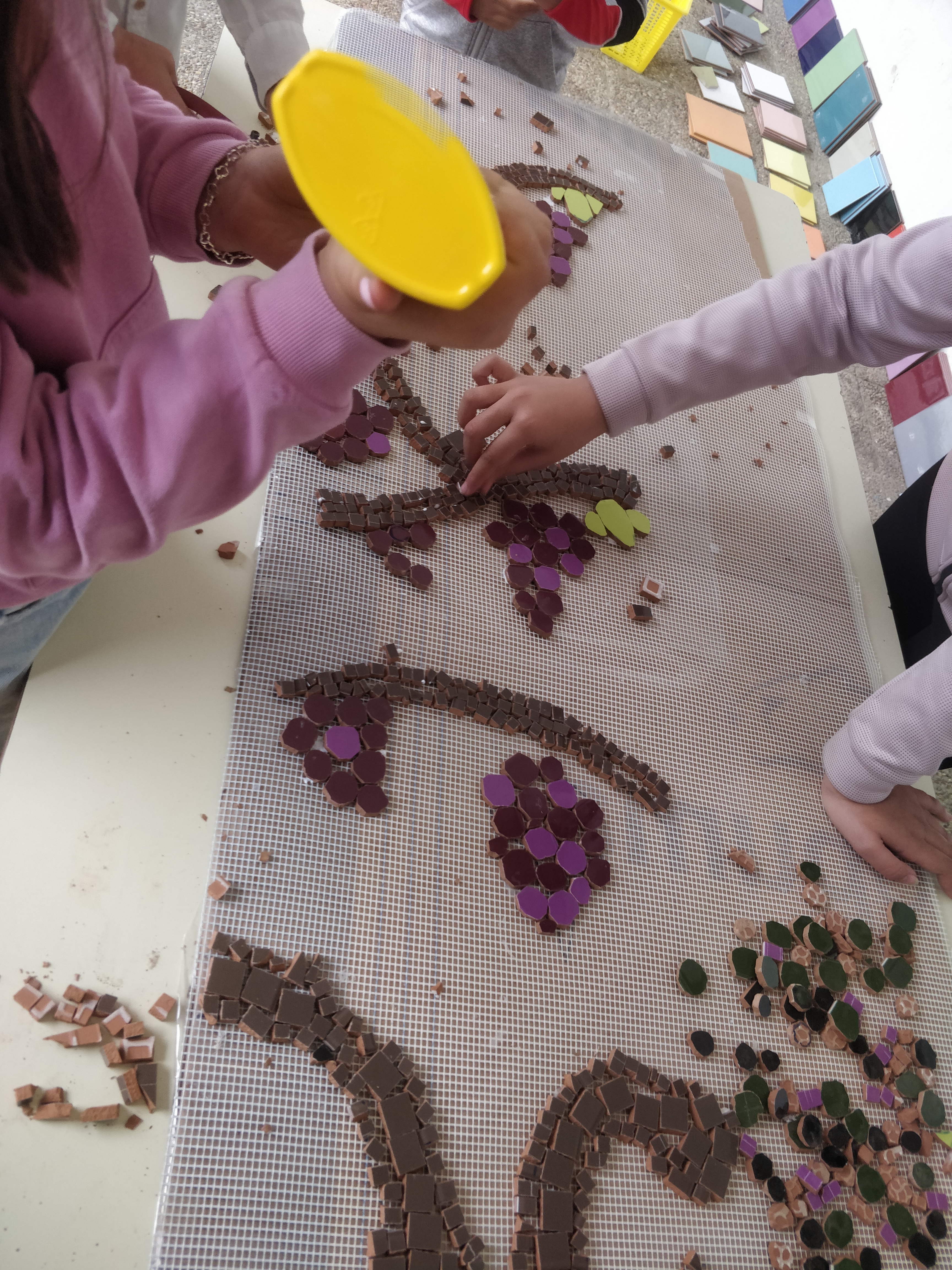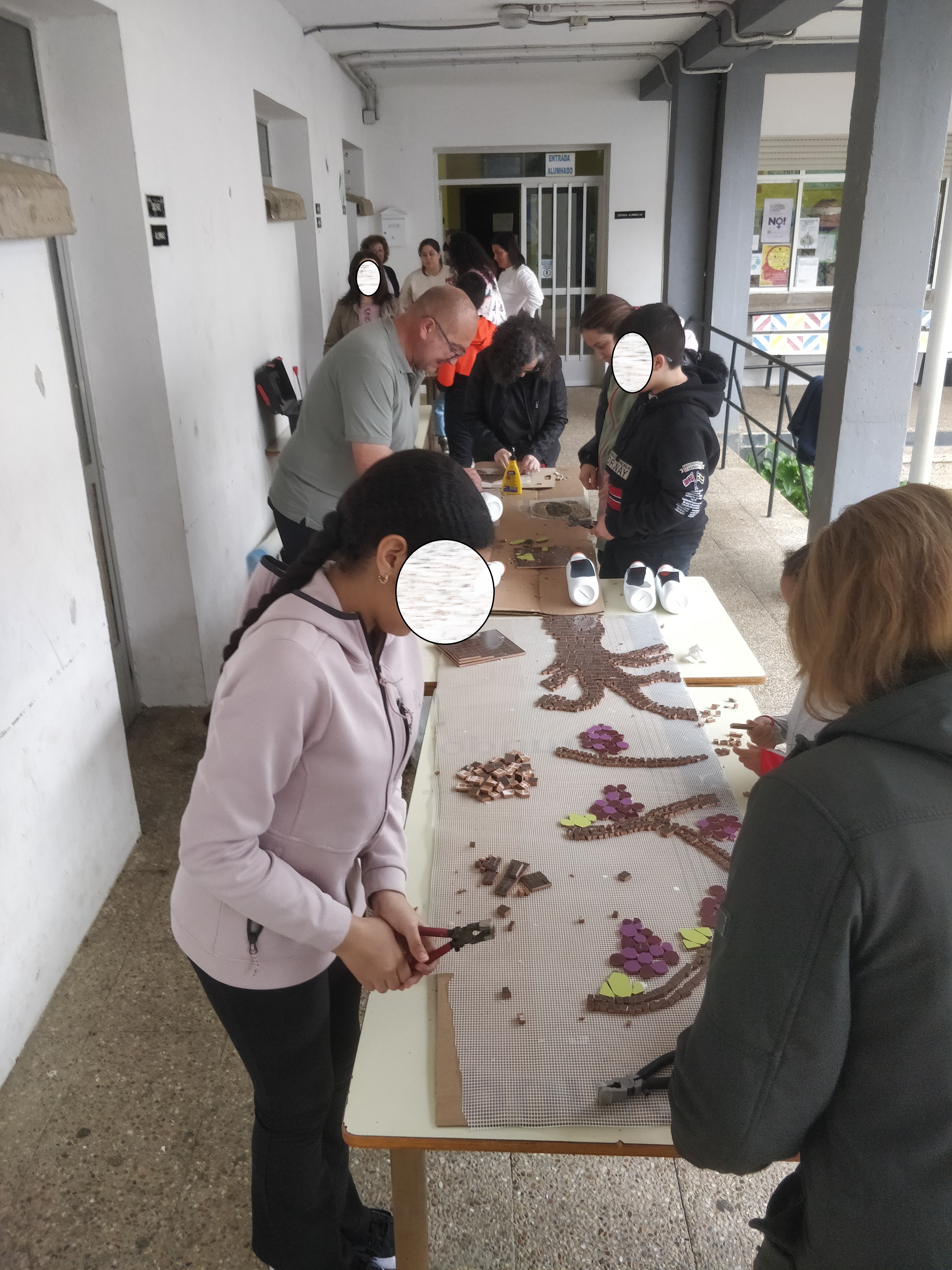 Los pasillos del C.P.E.B. Aurelio Menéndez volvieron a llenarse de creatividad y entusiasmo durante la segunda jornada del taller de mosaiquismo.