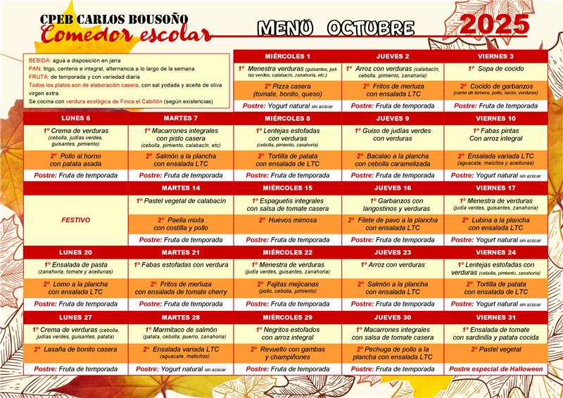 Menú octubre 2025