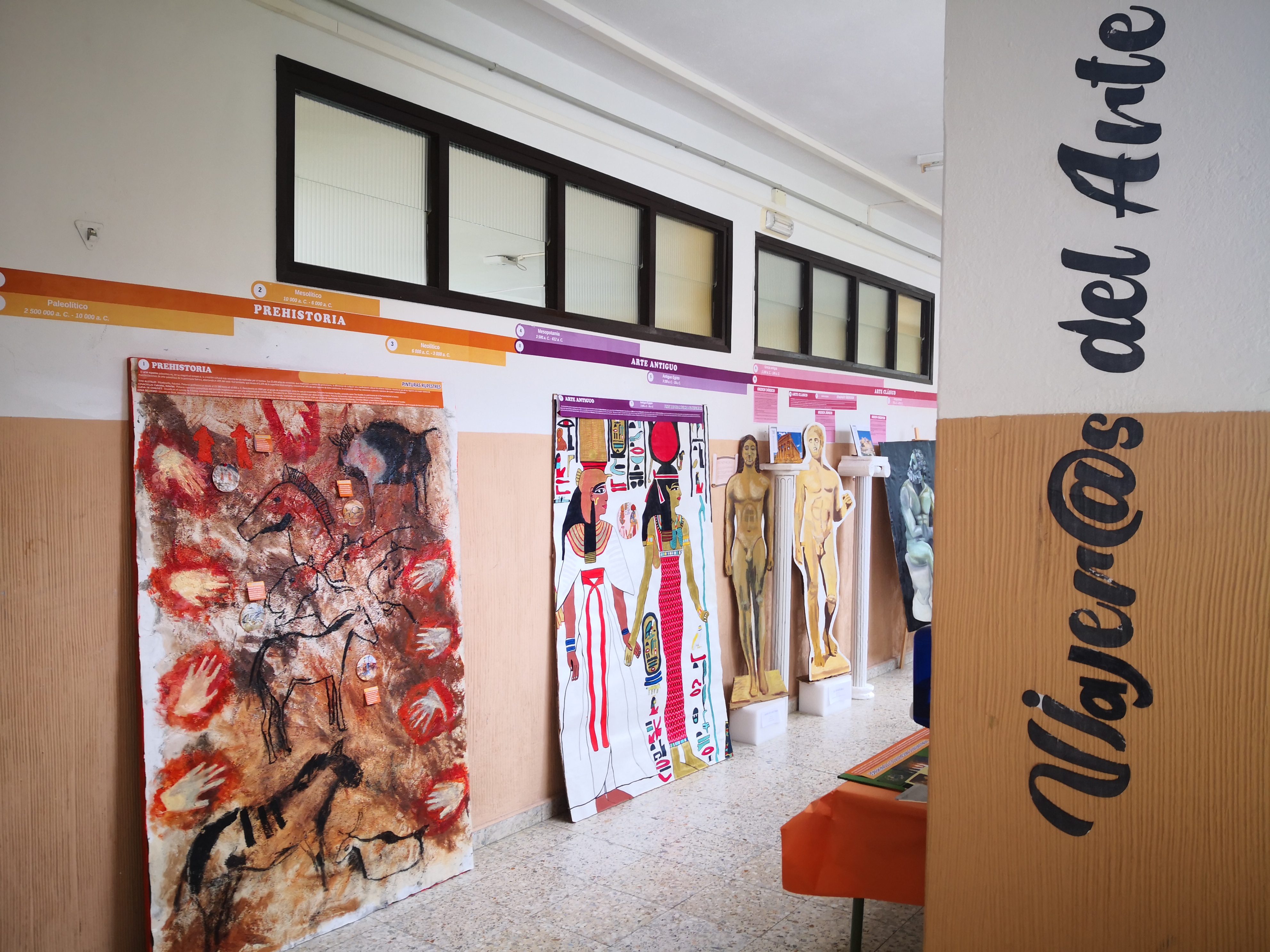 El objetivo del proyecto es acercar el mundo de la Historia del Arte al alumnado, de forma práctica y amena. Se realizará un viaje a lo largo de la Historia del Arte, siguiendo una línea temporal que abarcará desde la Prehistoria hasta nuestros días. A través de este viaje se trabajarán los saberes básicos de forma práctica, realizando trabajos en todas las disciplinas artísticas posibles; pintura, escultura, elementos arquitectónicos, cerámica, arte mural, mosaico, grabado, vidriera…de forma que se representará lo más destacado de cada periodo artístico.