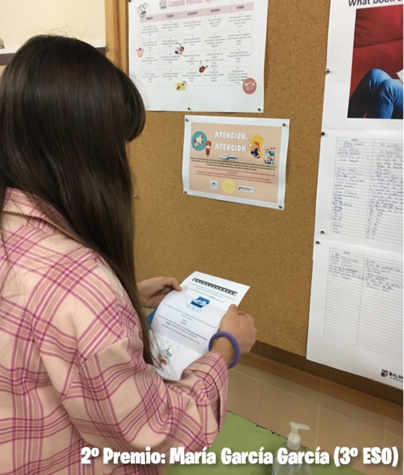 Tras tres días de participación, recibimos a las dos ganadoras de la actividad: Intissar Atati (4º ESO) y María García García (3º ESO) que reciben sus obsequios como buenas investigadoras que son.