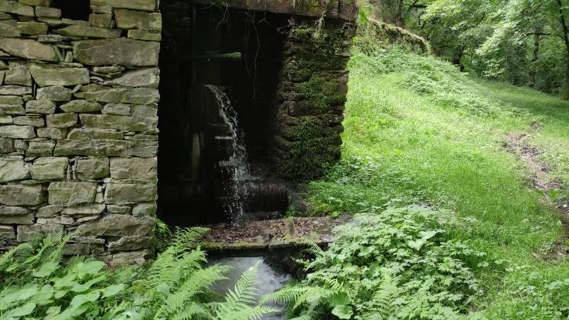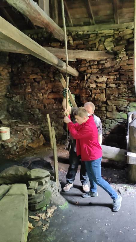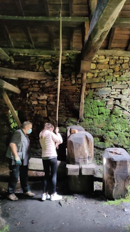Para finalizar la visita guiada bajamos hasta el río Pomar a visitar el Mazu d´Abaxu, antigua herrería hidráulica del siglo XVIII, donde vimos el mazo en funcionamiento.