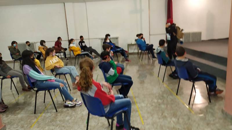 El 29 de abril hicimos nuestra primera actividad con secundaria, concretamente con 1º de E.S.O. Fue una obra teatral representada por la compañía teatral "Moving on". La obra se titulada "Lost and found".