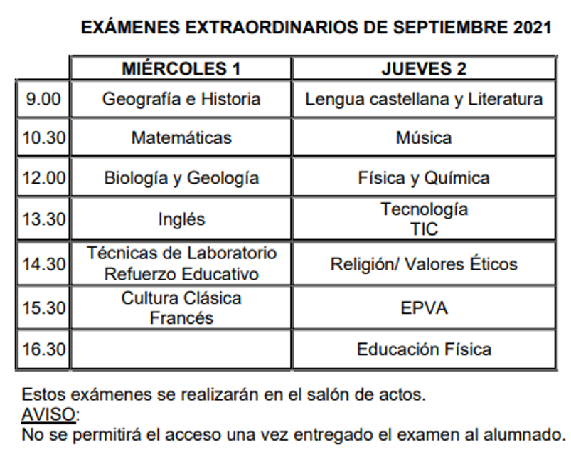 Exámenes Extraordinarios Septiembre