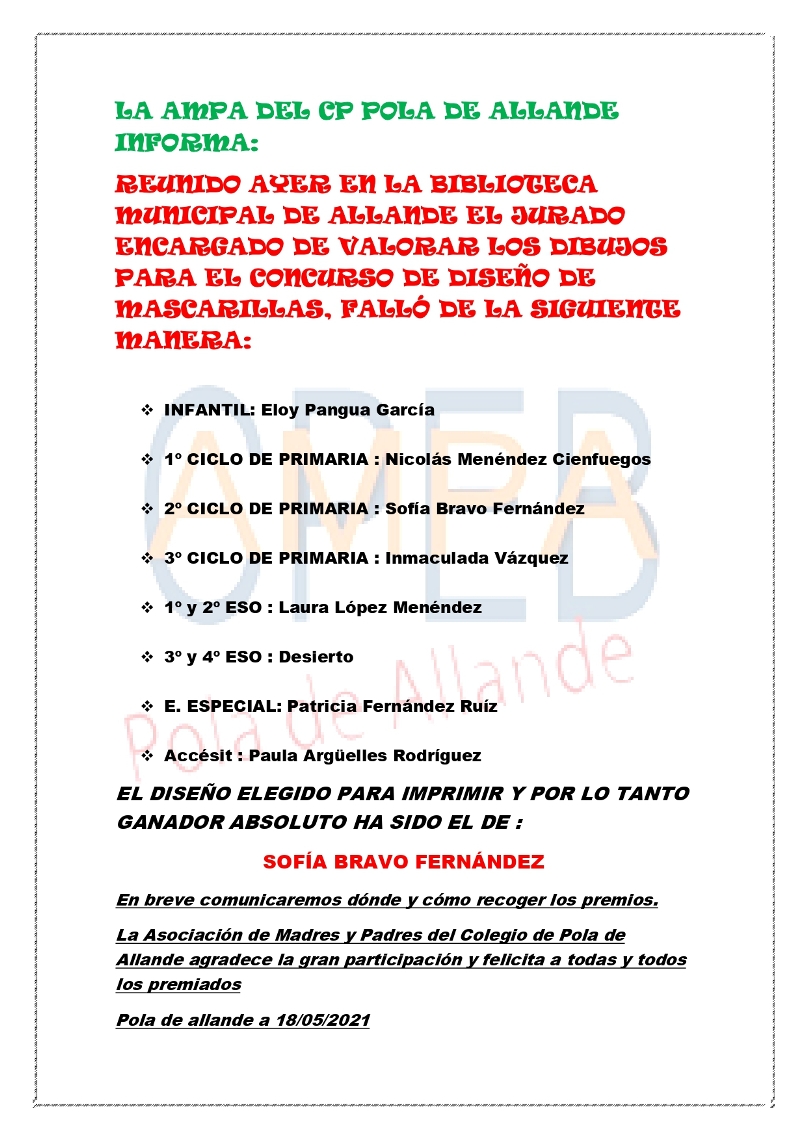 Ganadores Concurso de Mascarillas