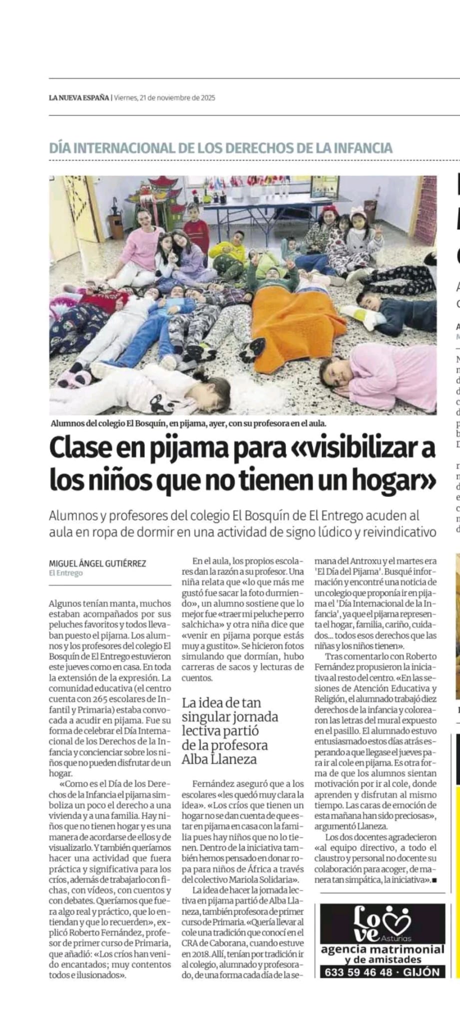 Y para tomar conciencia de la suerte que tenemos, porque tenemos una familia que nos cuida y nos quiere, y podemos ir al colegio y aprender... siendo conscientes que muchos niños como nosotros no tienen tanta suerte... hemos pensado que ya que en el cole nos sentinos como en casa, este día íbamos a venir como mejor y más cómodos estamos en casa... en pijama y zapatillas. La jornada ha sido un éxito... y ¡hasta salimos en prensa!