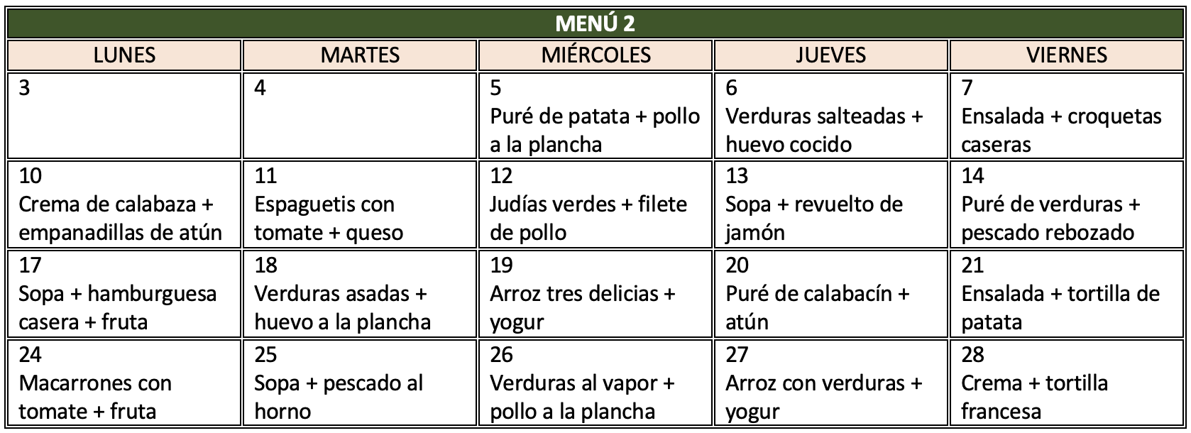 Una alimentación equilibrada es esencial para el bienestar físico y mental nuestro alumnado. Desde el comedor escolar se proporcionan comidas completas y variadas, bajo la supervisión del programa NAOS; por ello, en las cenas deberían complementar lo que comen a mediodía con platos ligeros, nutritivos y fáciles de preparar. A continuación, os damos tres propuestas de menús de cenas saludables (graduados de mayor a menor dificultad) que complementarían los menús del mediodía.