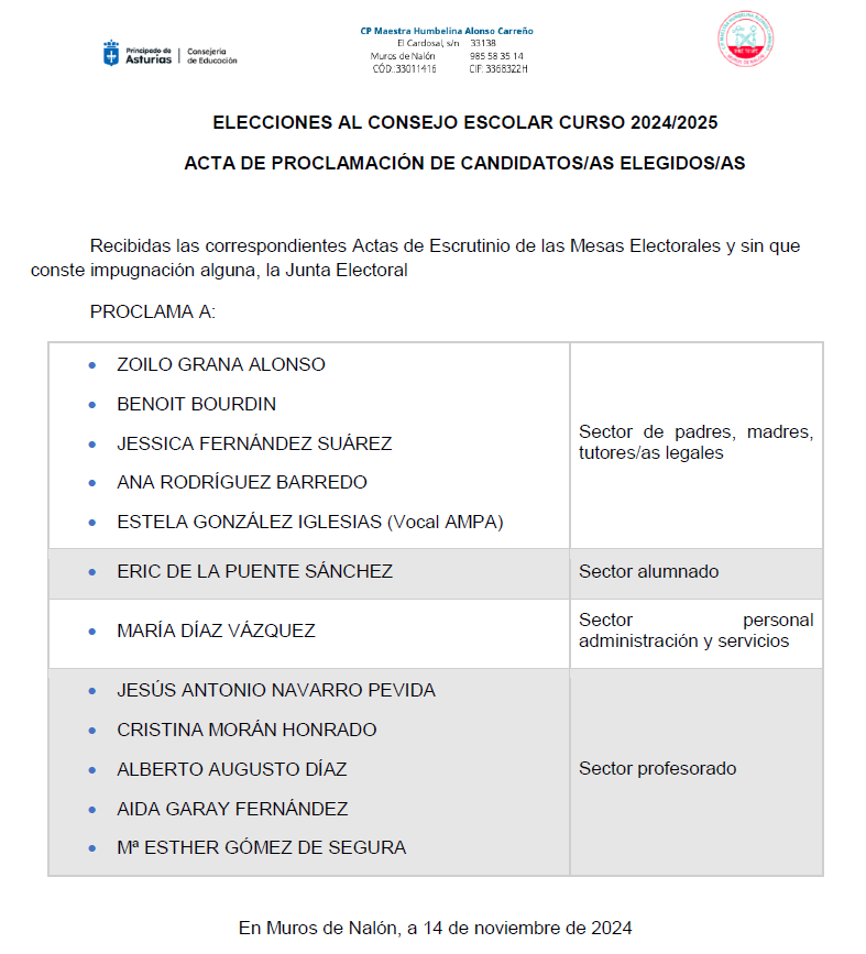 Se publica el listado definitivo de candidaturas para la renovación del Consejo Escolar y del AMPA