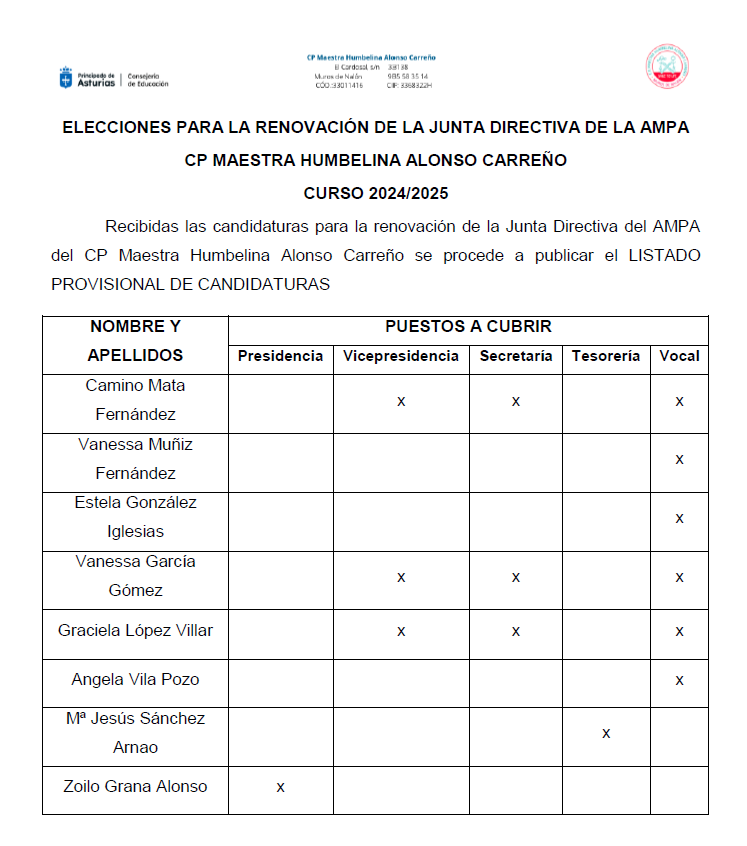 Se publica el listado provisional de candidaturas para la renovación del Consejo Escolar y del AMPA.