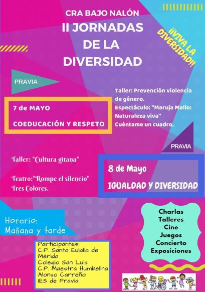 Bajo el lema "ser diferente es guay", el CRA Bajo Nalón ha organizado sus II Jornadas de la diversidad. Este año nuestro colegio ha participado más activamente que en la anterior edición, presentando trabajos en su concurso de dibujo y acudiendo al "cuentacuaadros" celebrado en Pravia el 7 de mayo.