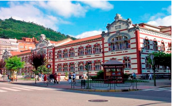 Destaca el tratamiento privilegiado de la fachada del pabellón central con remate decorativo en el centro y los extremos que recuerdan al mundo secesionista por las peinetas, escudos y triglifos, ventanas triforas, separadas por columnas con capiteles modernistas, etc.