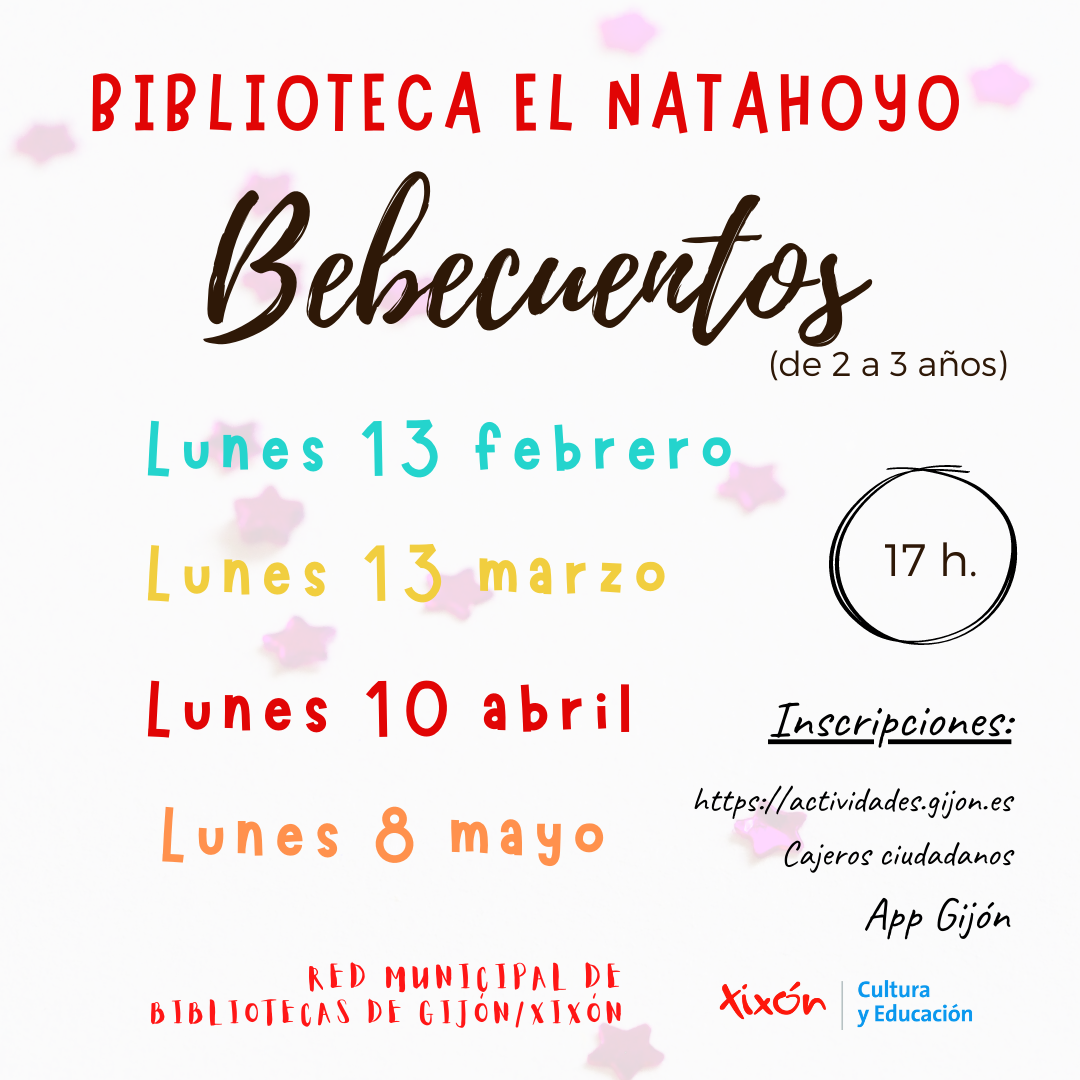 Bebecuentos: para niñas y niños de 2 a 3 años. Los lunes 13 marzo, 10 abril y 8 mayo, a las 17 horas en la zona infantil de la biblioteca.