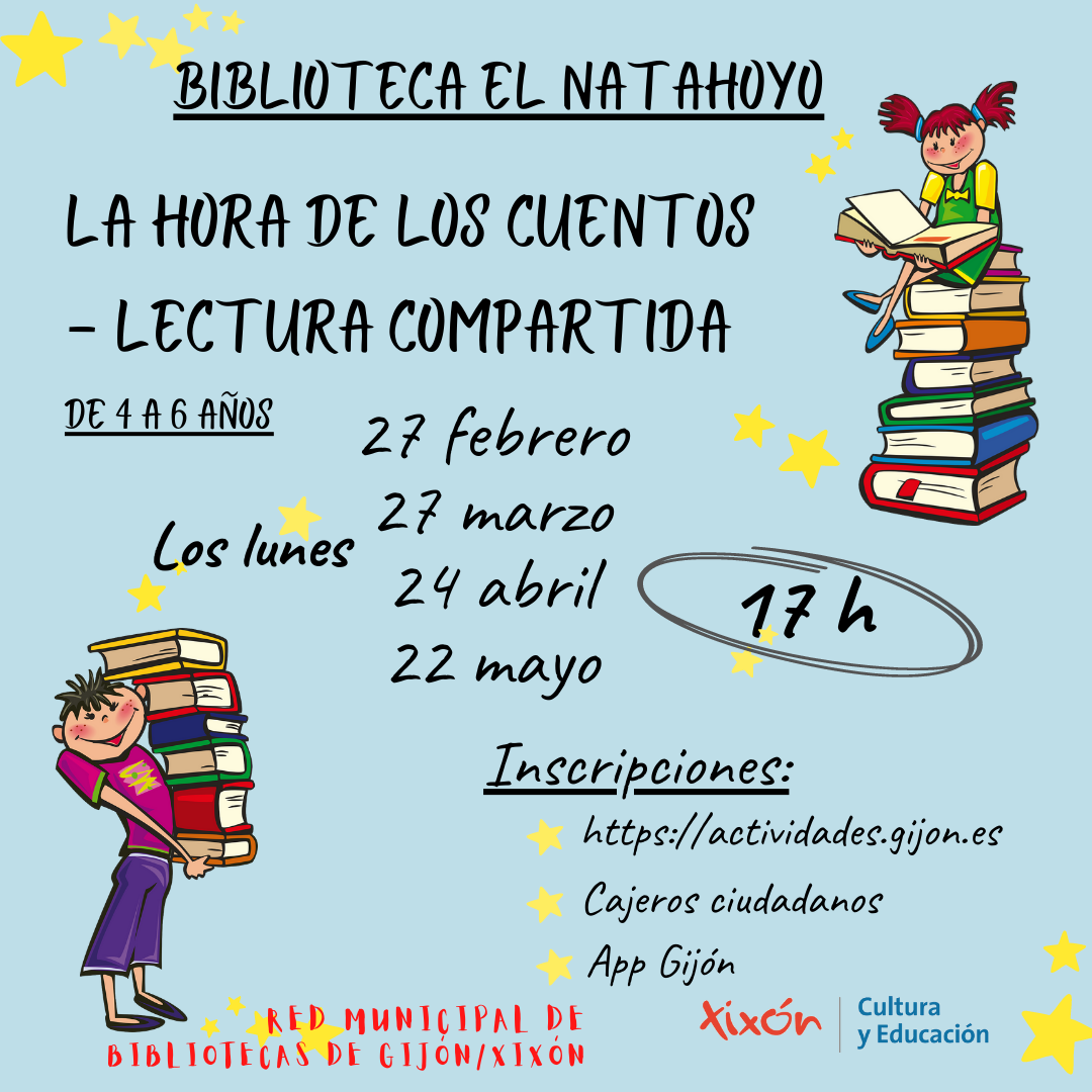 La Hora de los Cuentos, lectura compartida: para niños y niñas de 4 a 6 años. Los lunes 24 abril y 22 mayo, a las 17 horas en la zona infantil de la biblioteca.