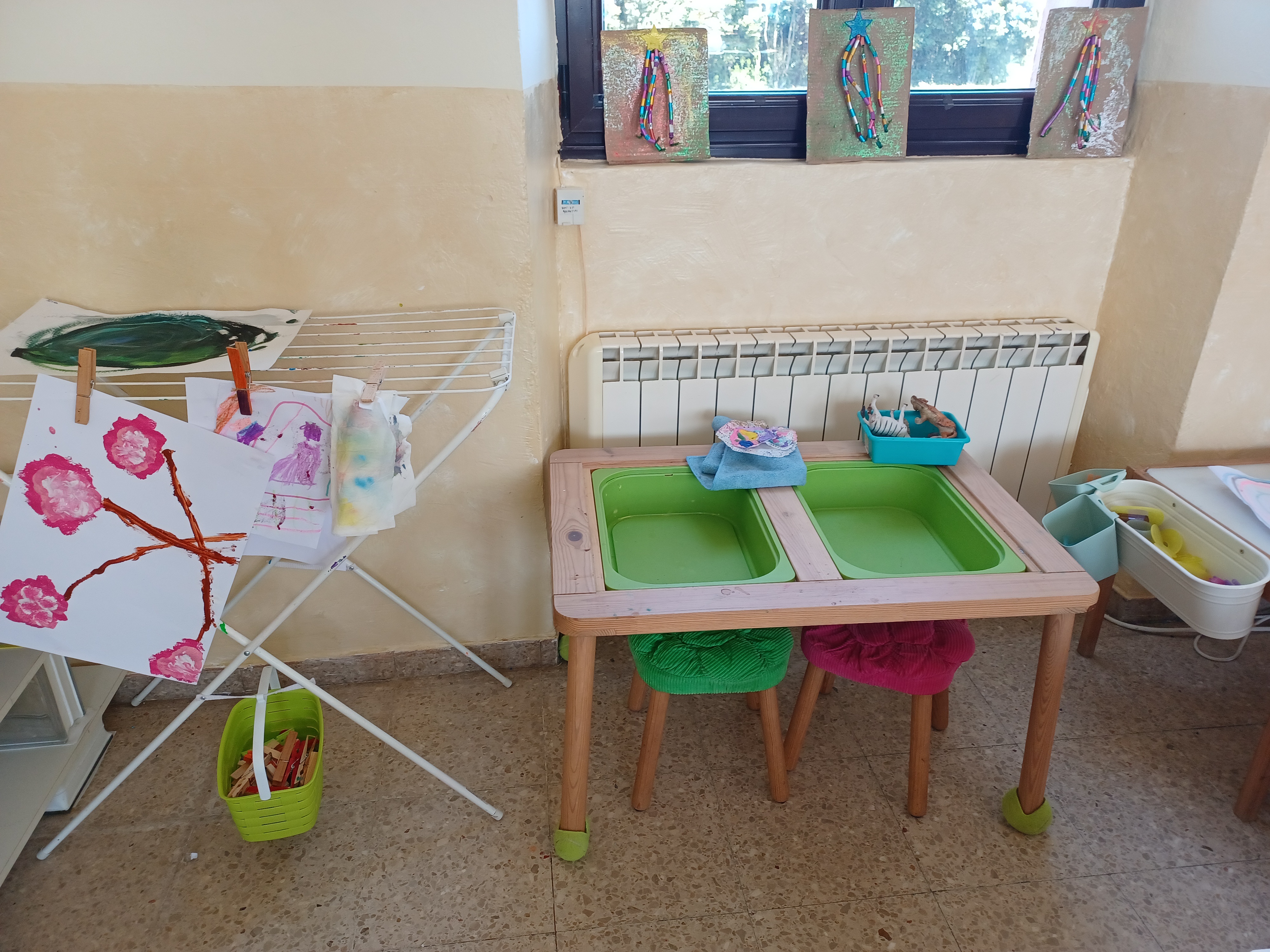 En este ambiente da oportunidad para que los/as niños/as puedan ir creando nuevos espacios. Se facilitan materiales para el juego y la construcción, como piezas sueltas, telas, lazos, animales, materiales naturales, materiales de reciclaje,..