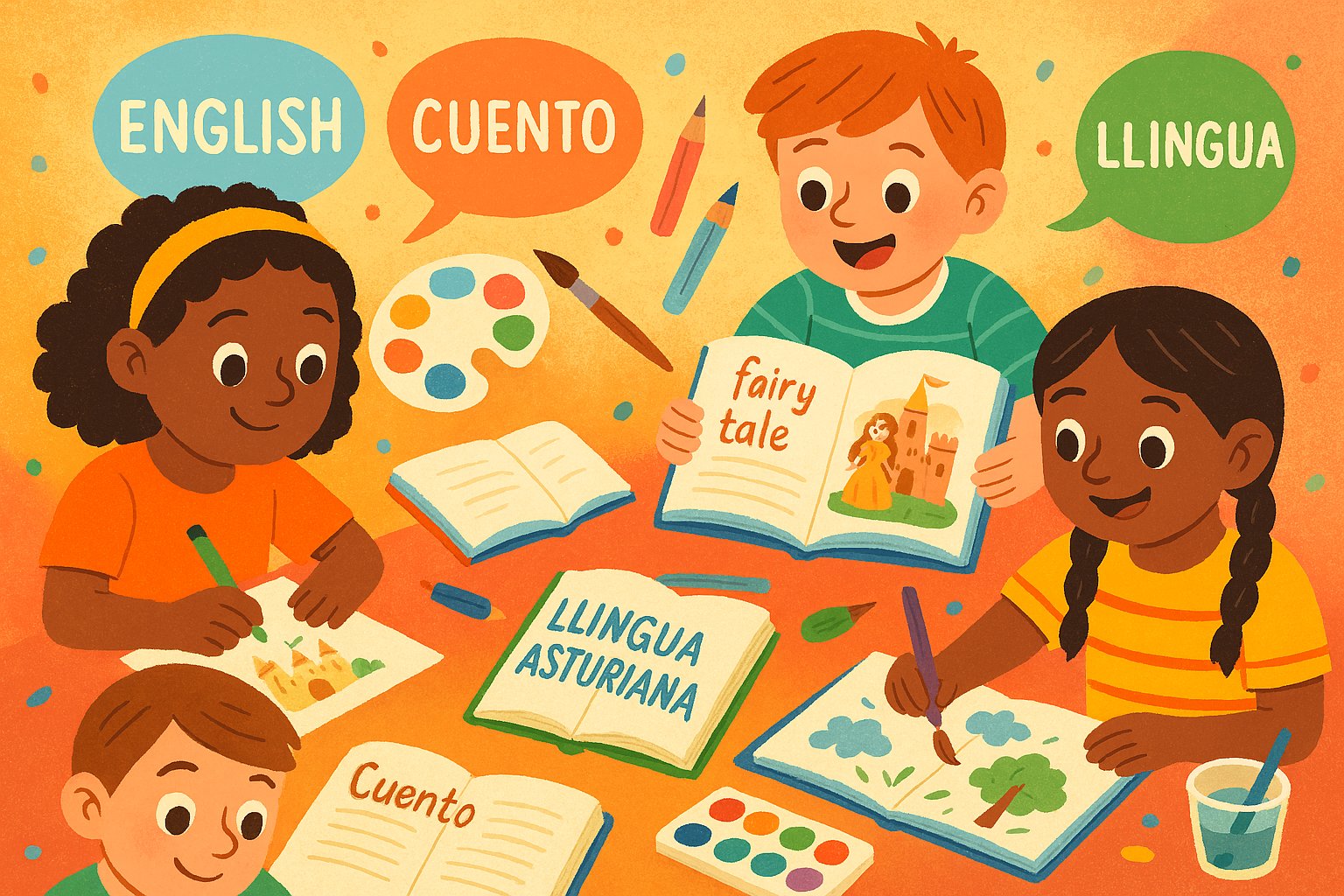 Este proyecto interdisciplinar, dirigido al alumnado de Educación Primaria, tiene como objetivo fomentar la creatividad, la competencia lingüística y la conciencia cultural mediante la creación de cuentos ilustrados en castellano, inglés y llingua asturiana.