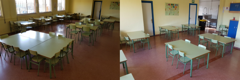 La sala múltiple se usa diarimente para impartir clases de Educación Física y Psicomotricidad. Además, también de usa de Salón de Actos para los eventos o actos escolares.