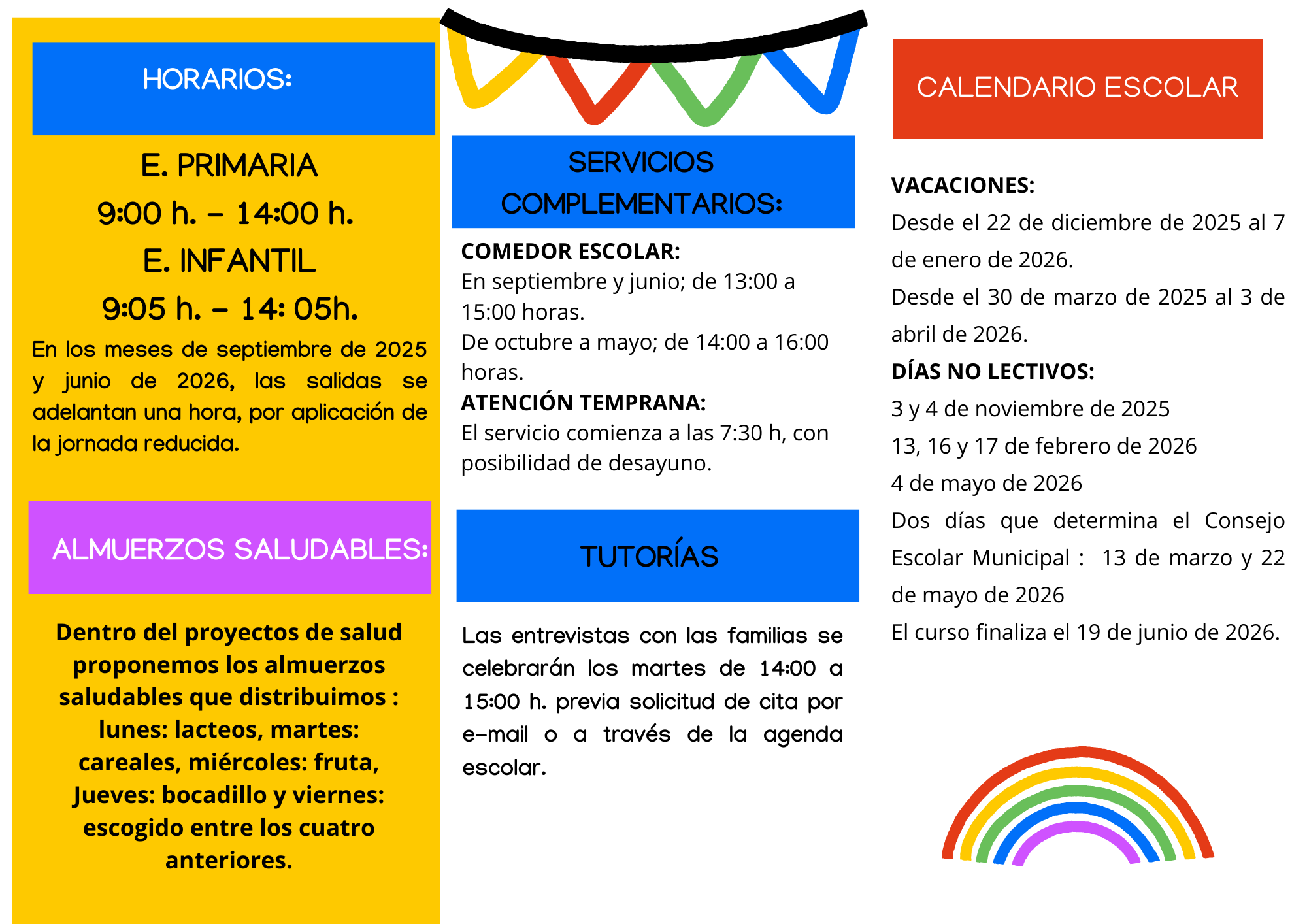 Adjuntamos en esta publi informaciones básicas a modo de imagen para tener en cuenta al inicio de este curso escolar.
