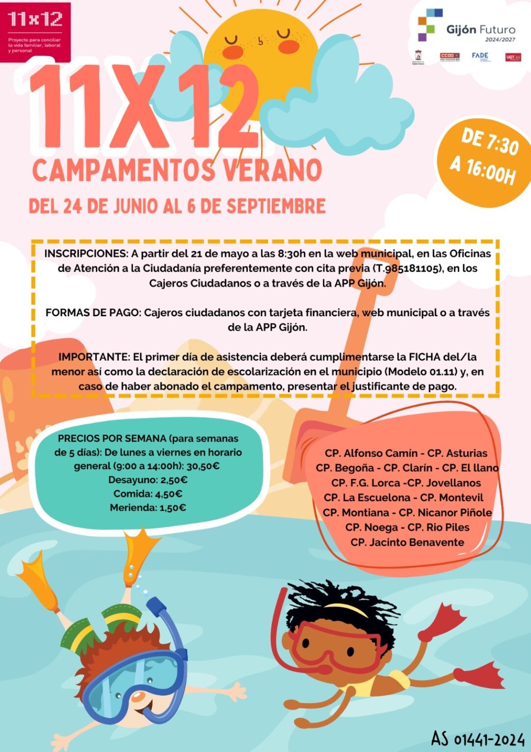 Nuestro centro es unos de los colegios de participantes en el proyecto 11x12 impulsado por el Ayuntamiento de Gijón. Este proyecto busca fomentar la conciliación laboral, familiar y personal. Se trata de un programa que combina el entretenimiento, las actividades culturales, la organización del tiempo para la realización de las tareas escolares y la merienda.