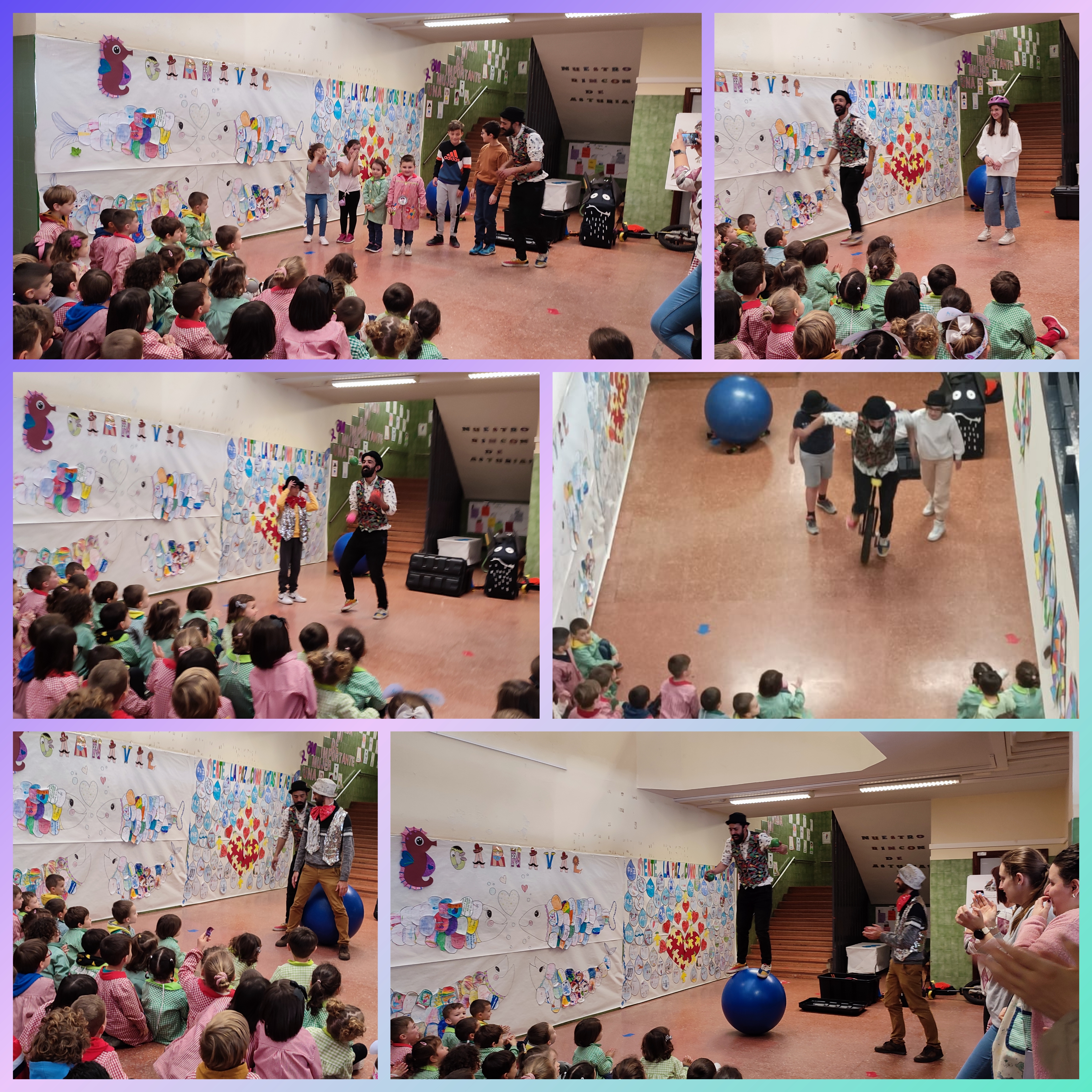 Nos despedimos de este segundo trimestre disfrutando de un gran espectáculo: el circo. Acrobacias, malabares y trucos de mágica deleitaron al alumnado y profesorado de nuestro cole.