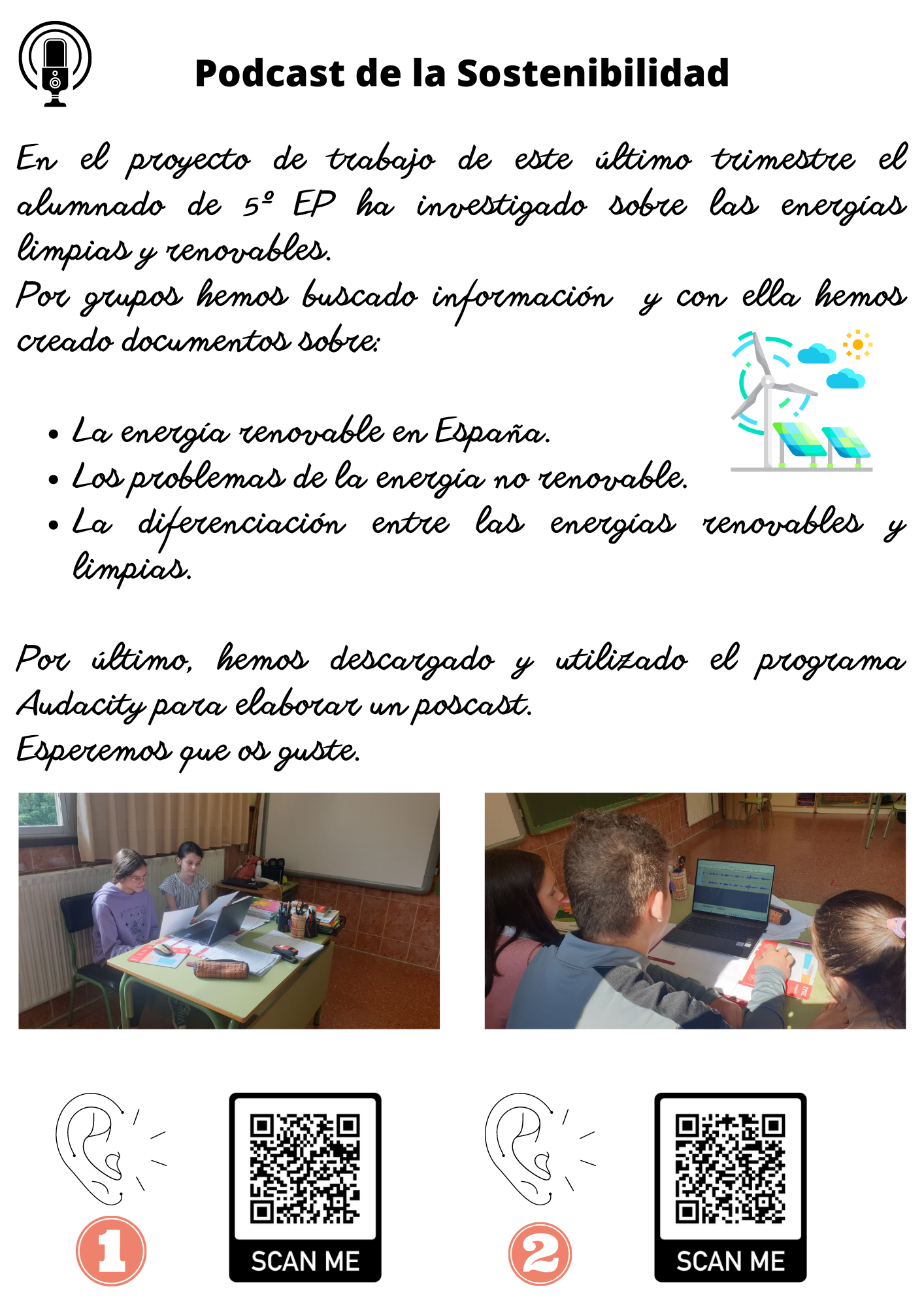 Y la cosa no termina ahí, porque el alumnado de 5º y 6ºEP realizó un podcast de la sostenibilidad y todo el centro colaboró en el montaje audiovisual "Sing for the Climate".