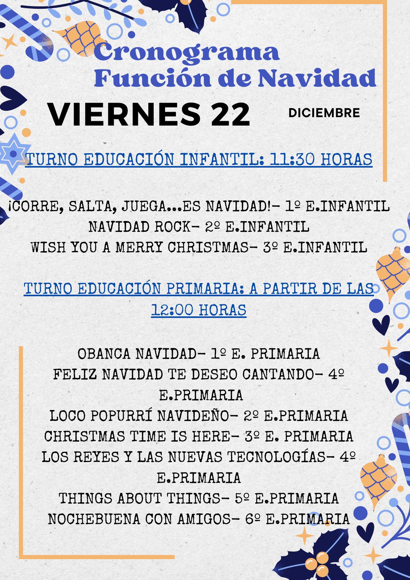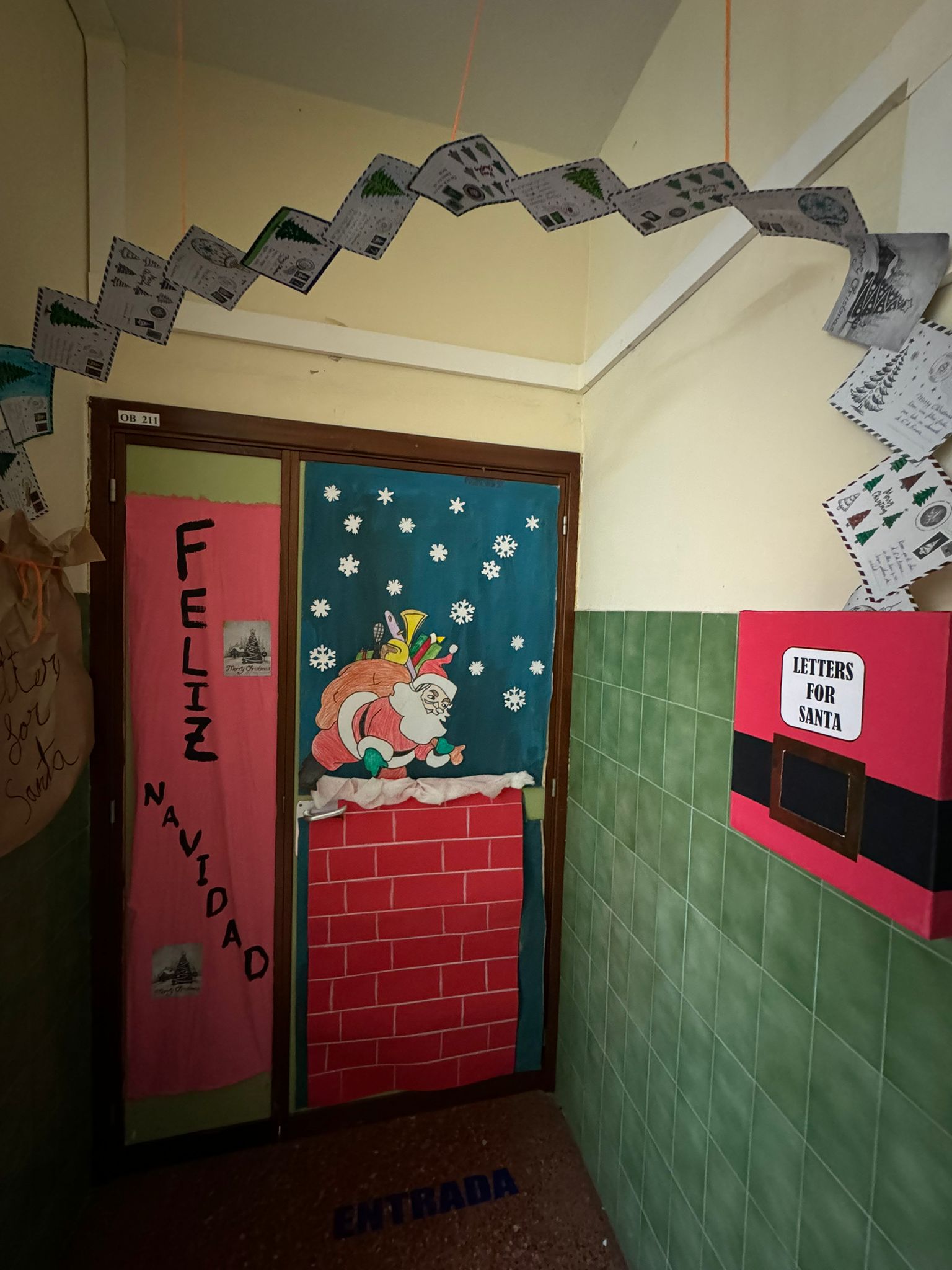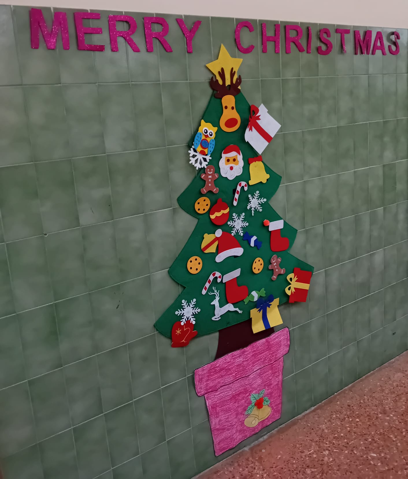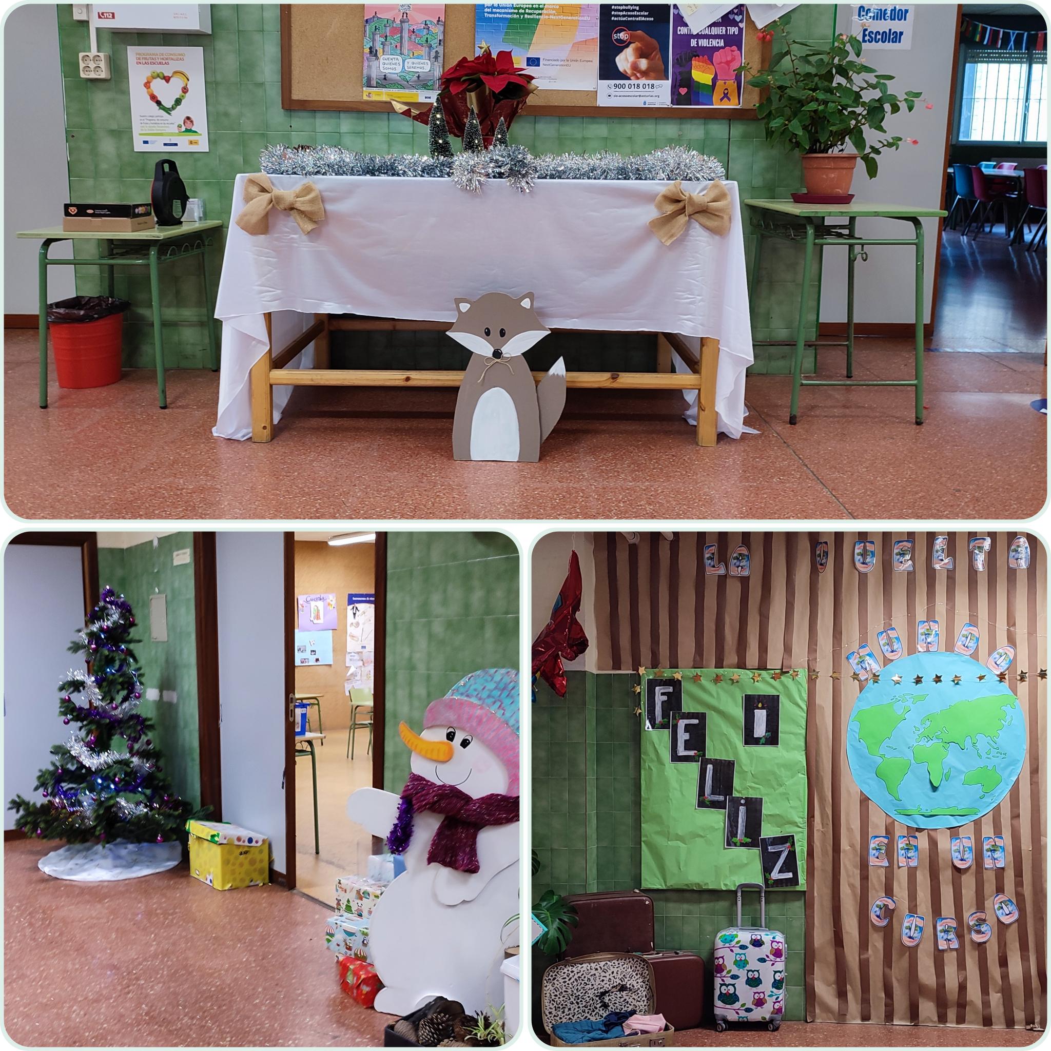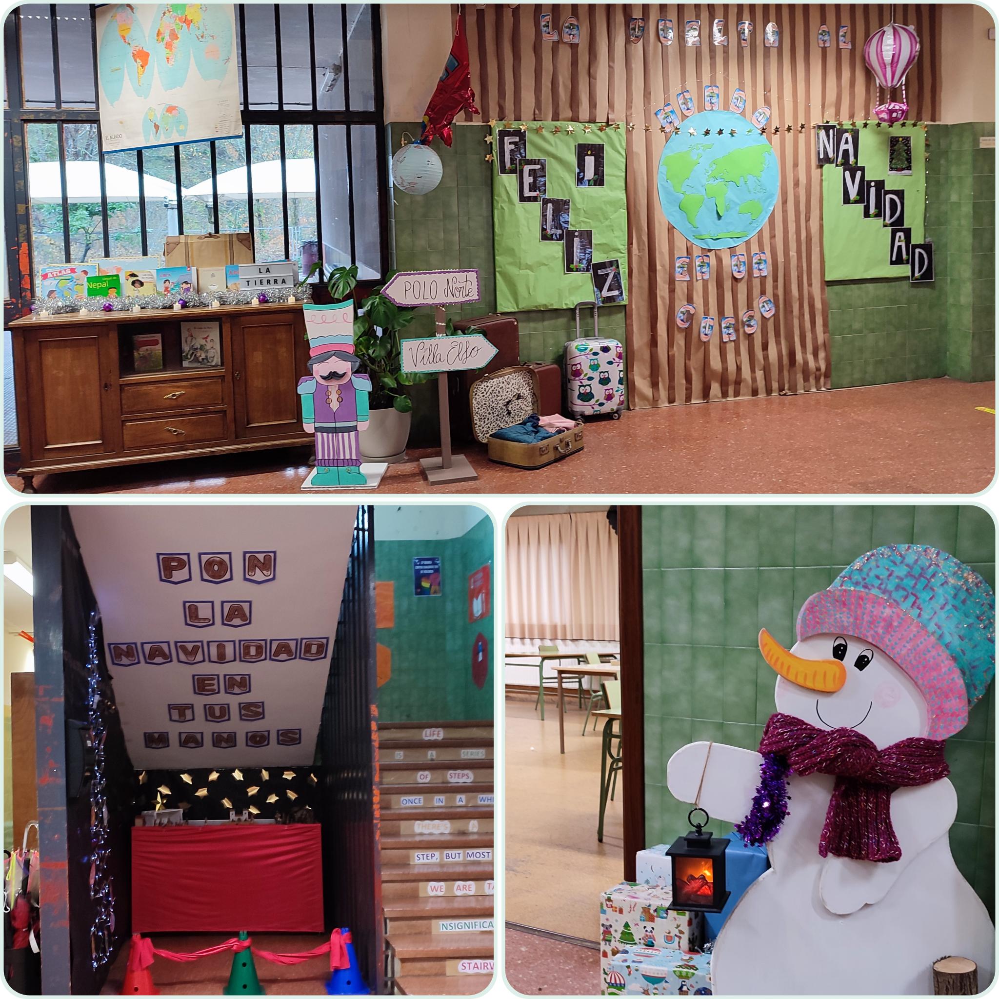 En nuestro cole ya se respira aire navideño. Poco a poco el centro se va impregnando del espíritu de la Navidad con la decoración de aulas, pasillos y puertas. No nos olvidemos de los ensayos diarios de villancicos, bailes, teatros y demás actuaciones que podremos disfrutar en el festival del día 22 de diciembre. Alumnado, profesorado y comunidad educativa implicados y viviendo a tope este tiempo tan especial.