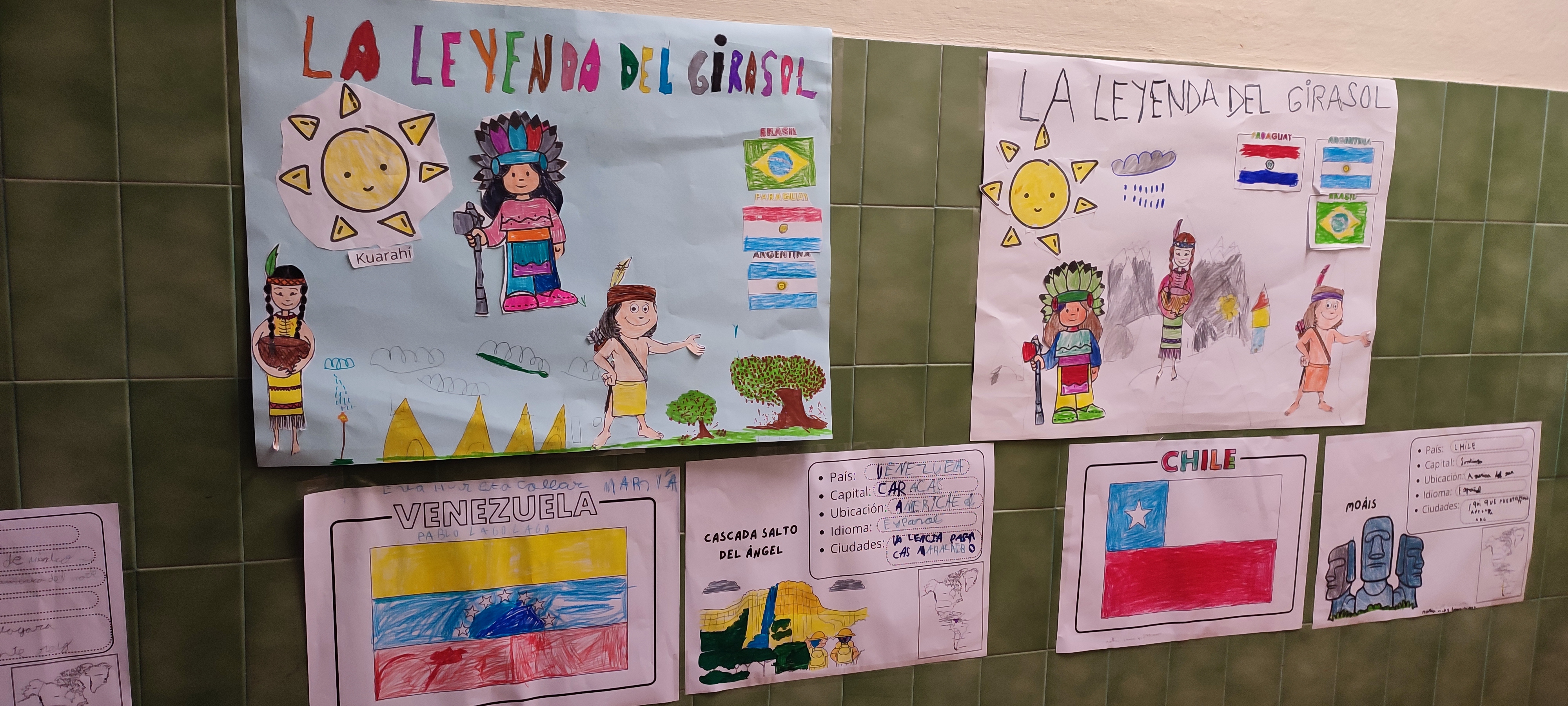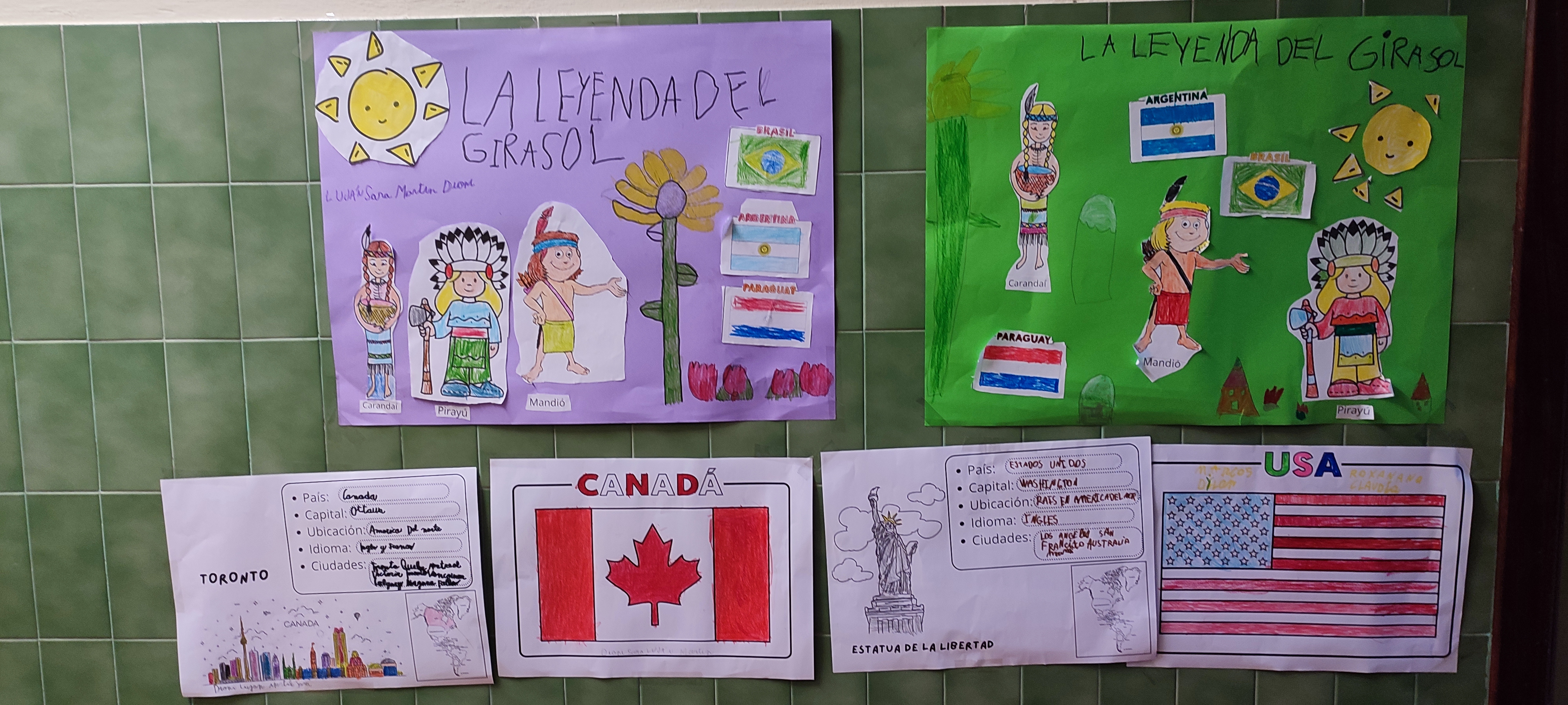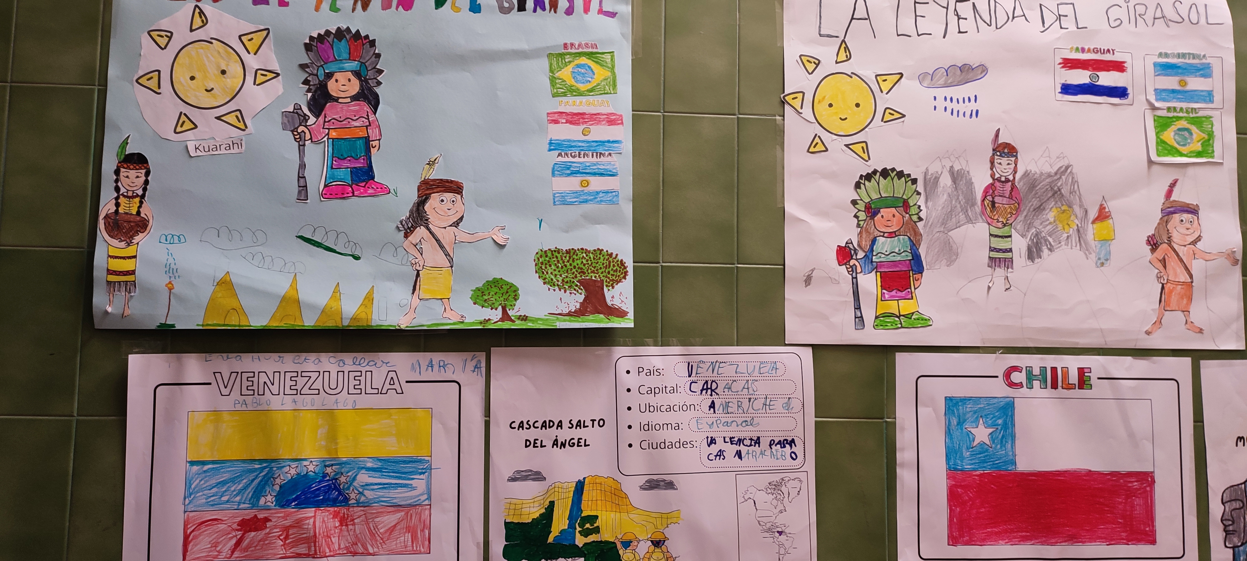 En este primer trimestre hemos iniciado nuestra andadura por América aprendiendo cosas como: banderas, algunas capitales, lugares y monumentos , así como una leyenda del pueblo guaraní. Hemos trabajado de manera colaborativa y nos hemos pasado genial.